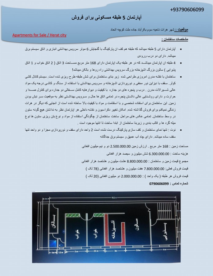 5 floor apartment for sale, Location : Bekr Abad area, Melat St, PD3, Herat Afghanistan