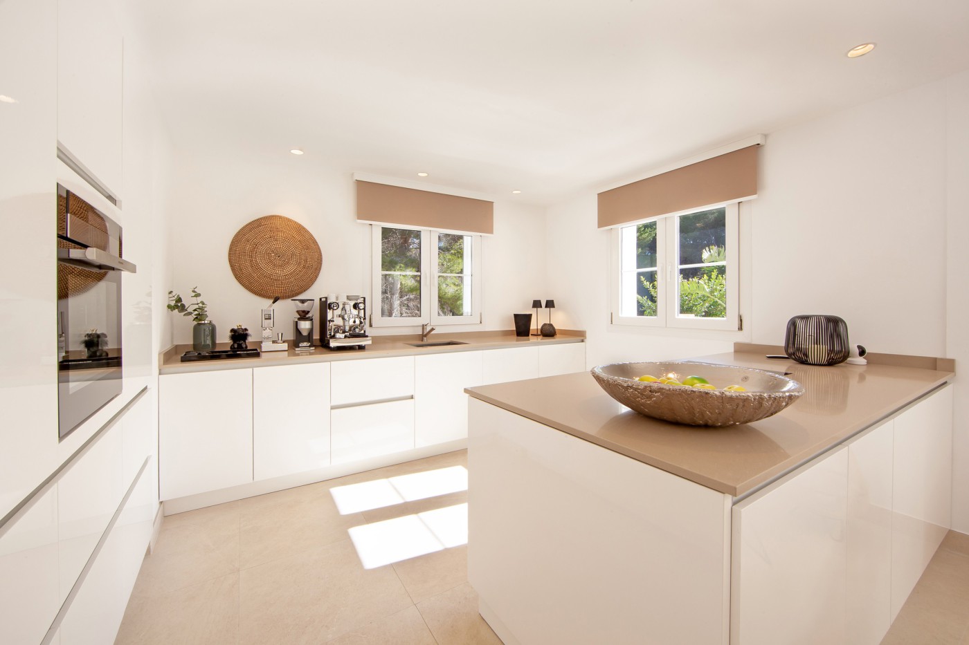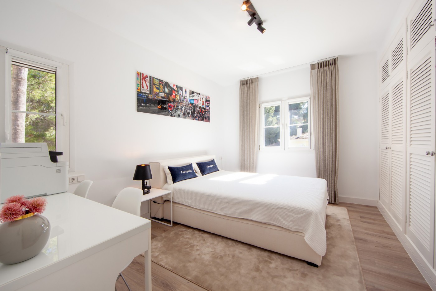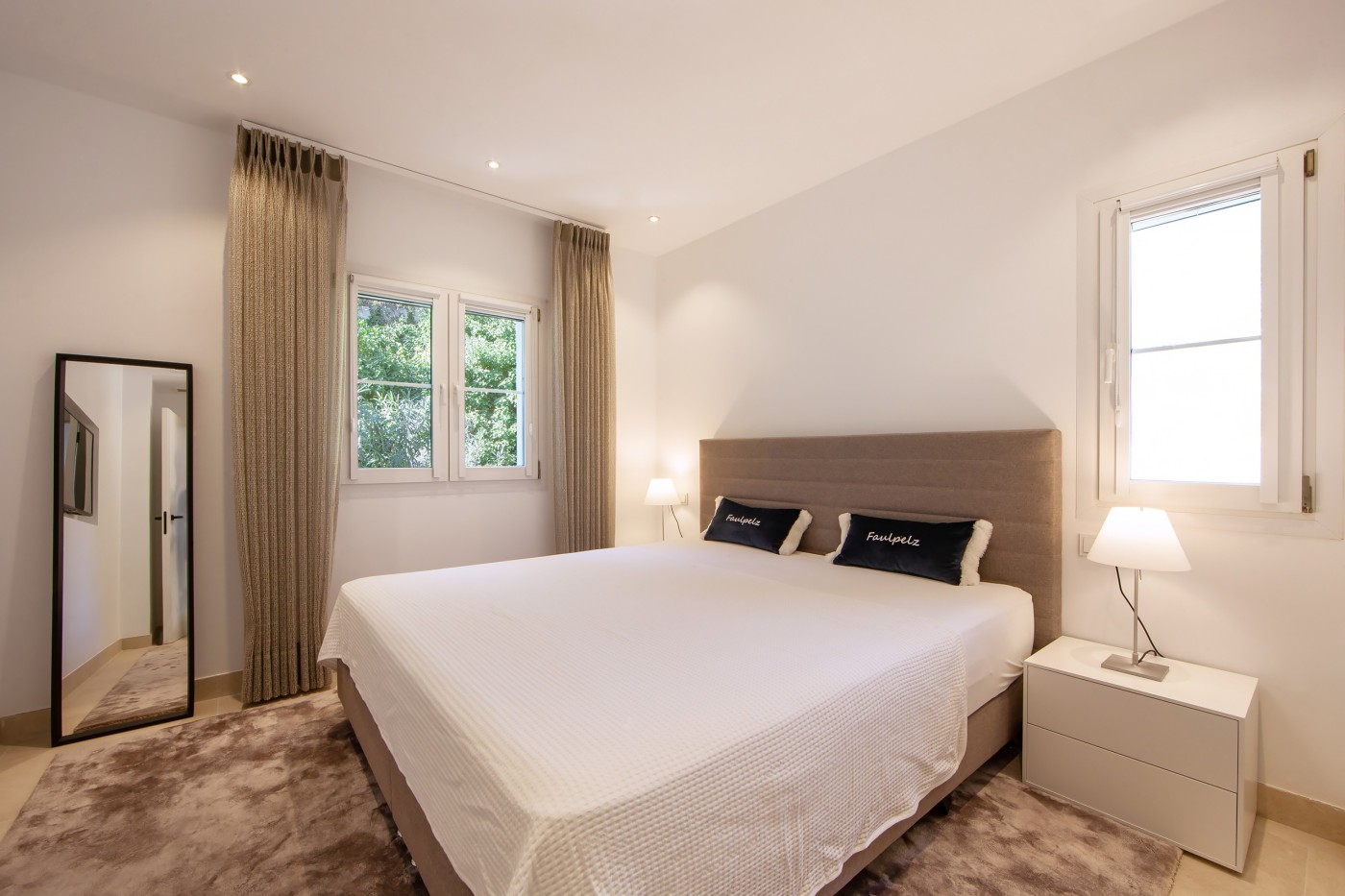The oasis in Mallorca called “Devotion & Tranquility” is located in Camp de Mar, a private resort in the municipality of Andratx. Surrounded by idyllic and soothing nature, this Mediterranean residence ‘par excellence’ extends over two levels with a usable area of 350 m2 and a plot size of 1,131 m2. The recently renovated “Devotion & Tranquility” houses a first-class minimalist design with exquisite furniture with a holiday flair. The VIP villa is spacious and has four bedrooms, three bathrooms and a separate WC. There is also a fully equipped kitchen with all the appliances you can imagine! The outdoor area offers a magnificent pool, tranquil sun loungers, high-quality designer furniture and a dining area. Other features include high privacy, air conditioning w/c, high-speed internet and an alarm system. A great investment opportunity, a family or holiday home to enjoy for a lifetime. As an expansion reserve, a double garage with a guest flat can be realised later if desired
