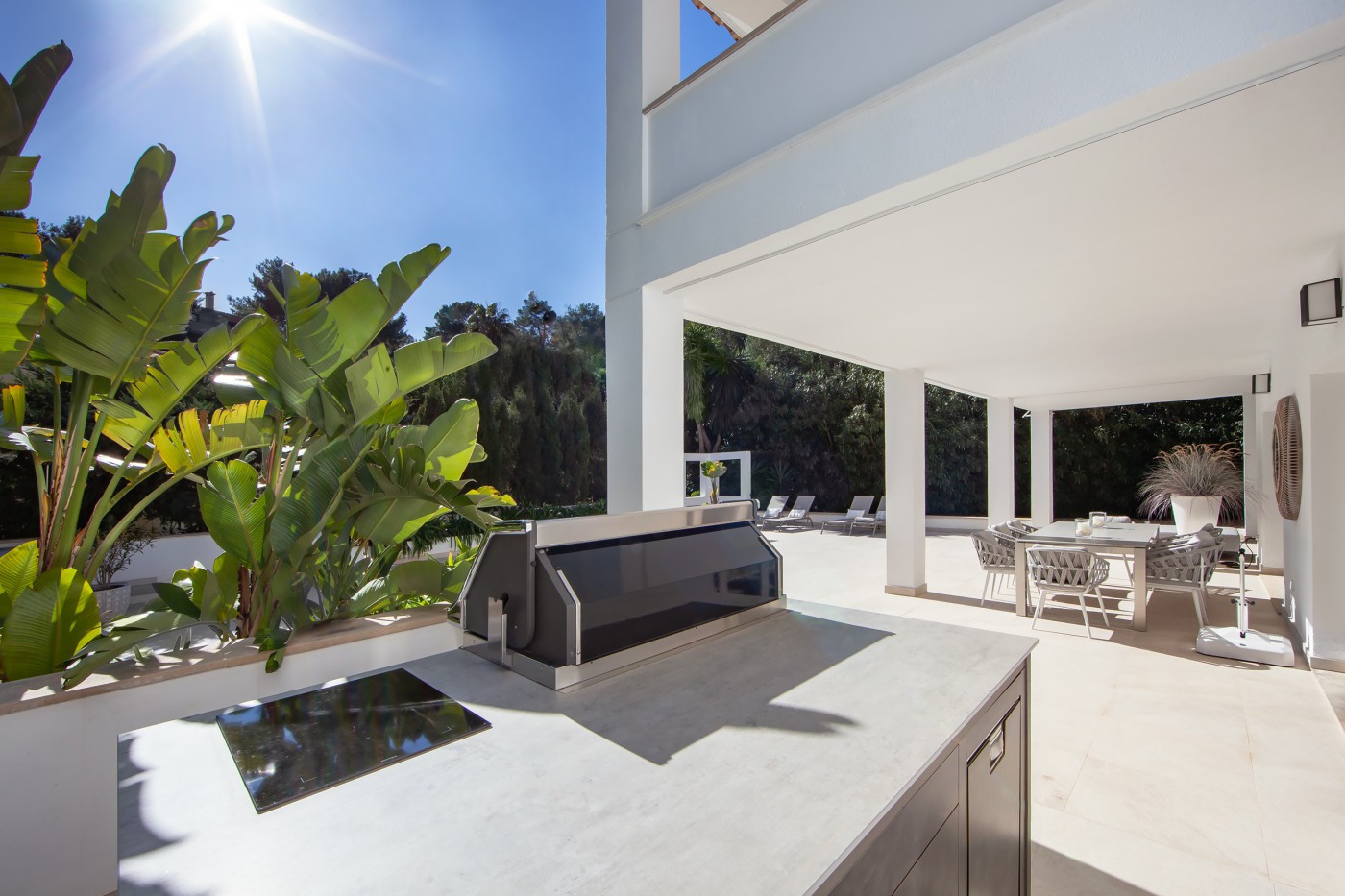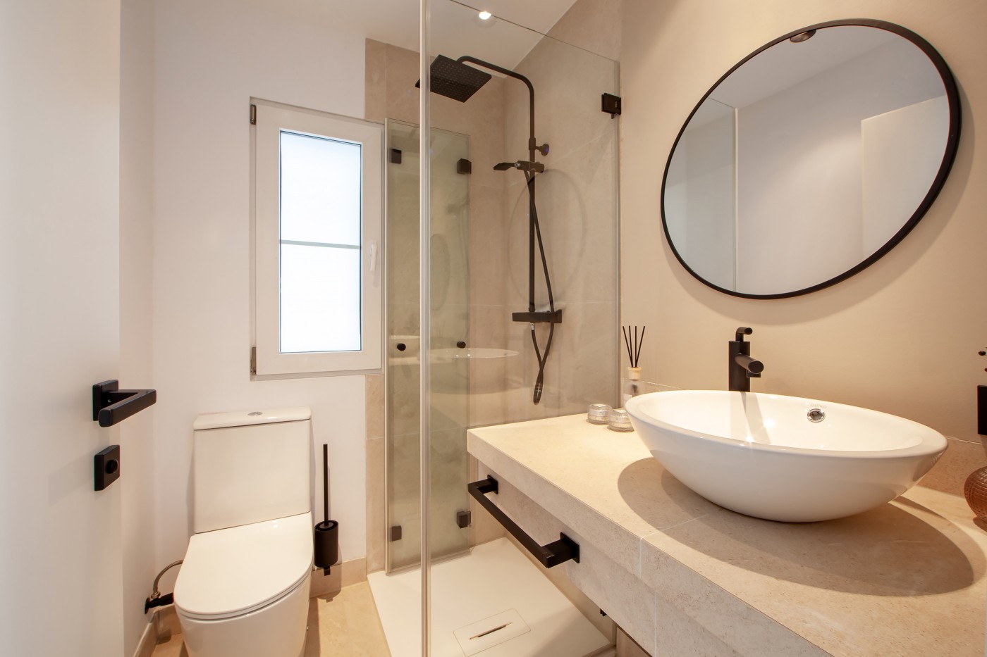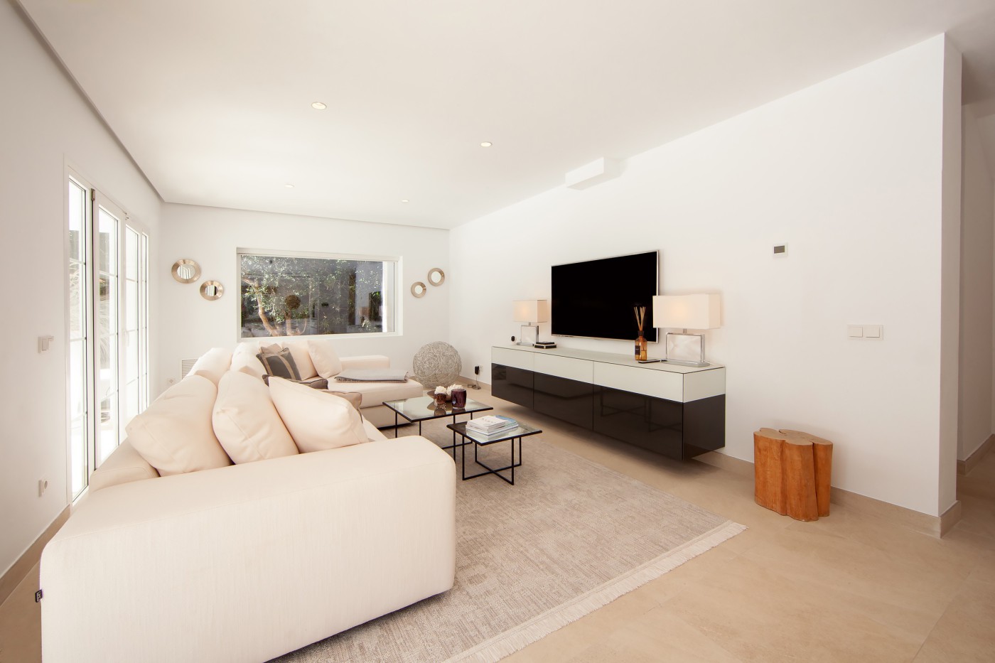 The oasis in Mallorca called “Devotion & Tranquility” is located in Camp de Mar, a private resort in the municipality of Andratx. Surrounded by idyllic and soothing nature, this Mediterranean residence ‘par excellence’ extends over two levels with a usable area of 350 m2 and a plot size of 1,131 m2. The recently renovated “Devotion & Tranquility” houses a first-class minimalist design with exquisite furniture with a holiday flair. The VIP villa is spacious and has four bedrooms, three bathrooms and a separate WC. There is also a fully equipped kitchen with all the appliances you can imagine! The outdoor area offers a magnificent pool, tranquil sun loungers, high-quality designer furniture and a dining area. Other features include high privacy, air conditioning w/c, high-speed internet and an alarm system. A great investment opportunity, a family or holiday home to enjoy for a lifetime. As an expansion reserve, a double garage with a guest flat can be realised later if desired