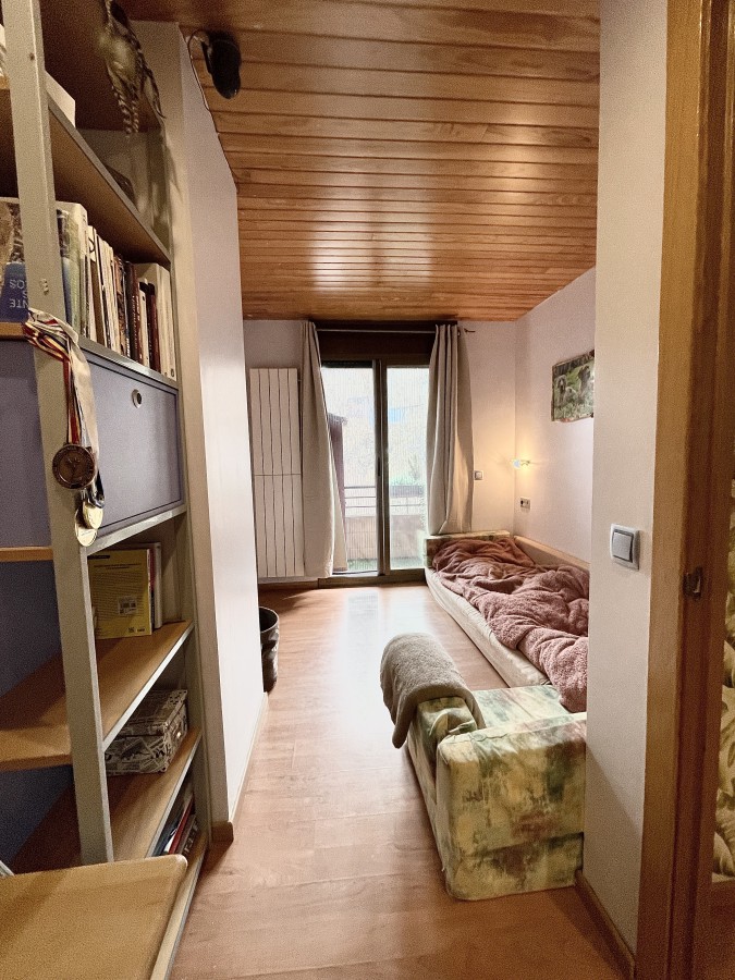 Very nice triplex penthouse with 3 bedrooms, two bathrooms and two terraces. Large parking space of 20m2, possibility to park more vehicles in the common areas. Storage room on the same floor. Sun and incredible views. Apartment in the middle of nature and close to all services. Absolute tranquility. Residential area Escas close to La Massana. DIRECTLY FROM OWNER.