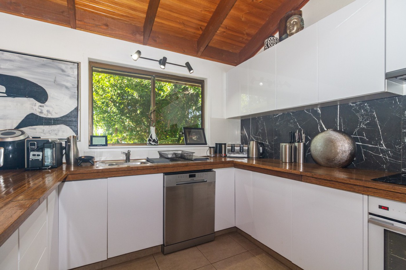 sleek look. The standout in this room is definitely the bamboo benchtop, which also