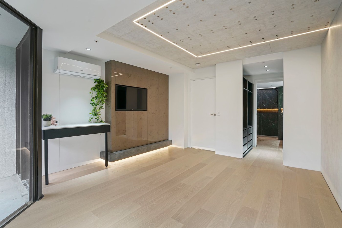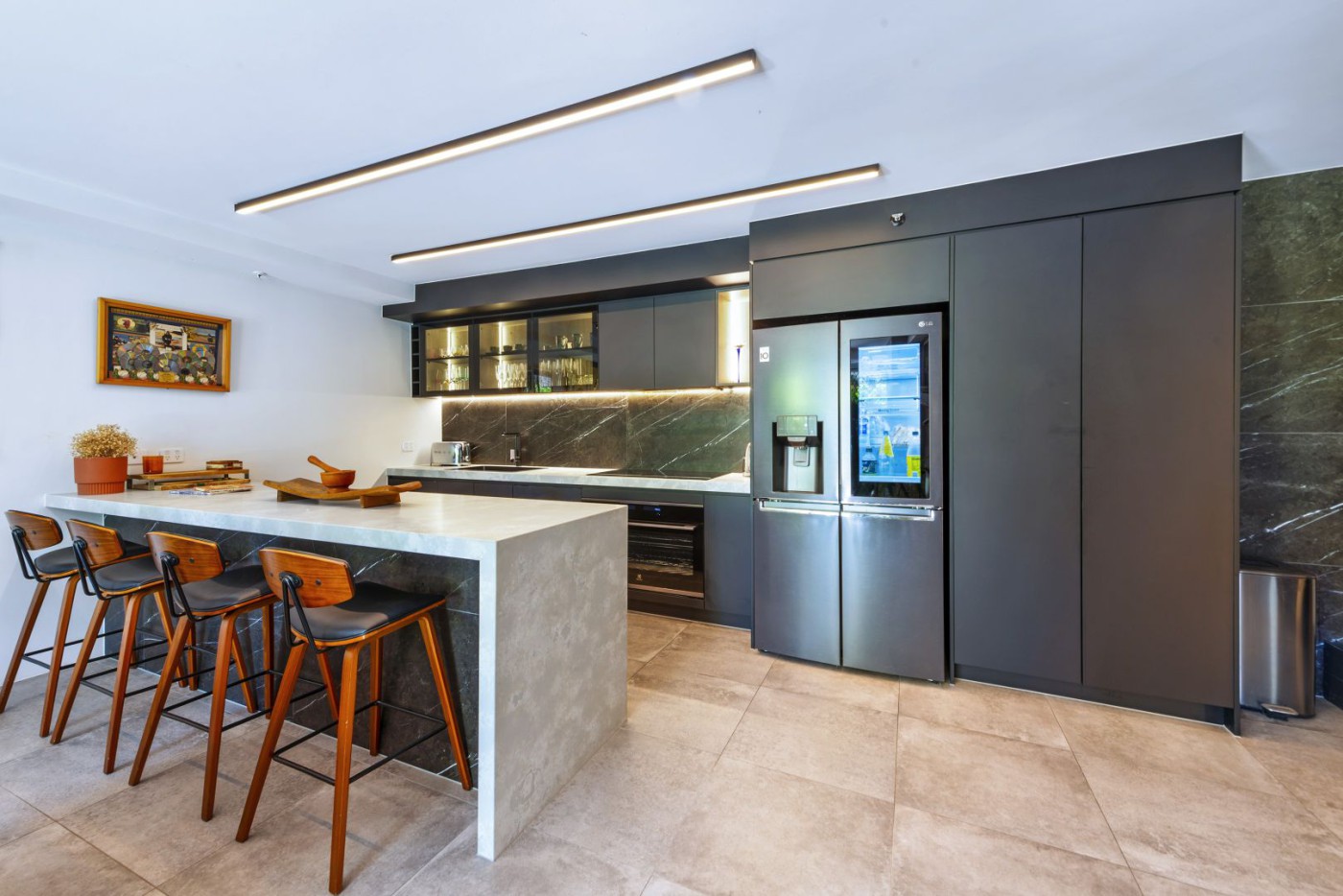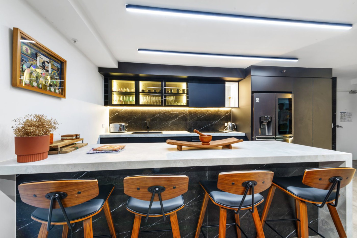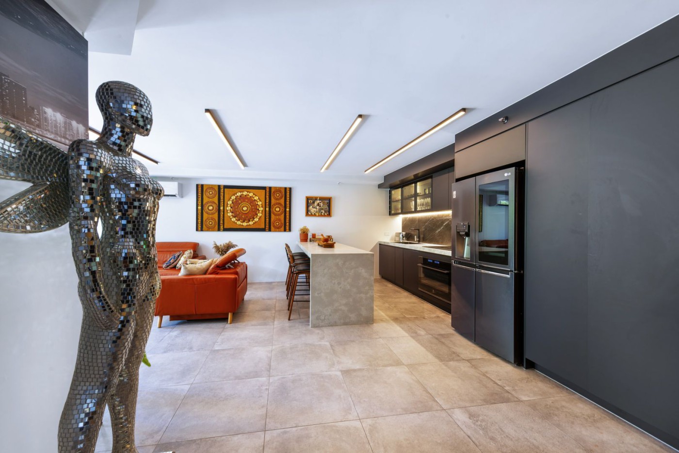 This apartment showcases modern elegance with its architectural beauty and designer finishes.