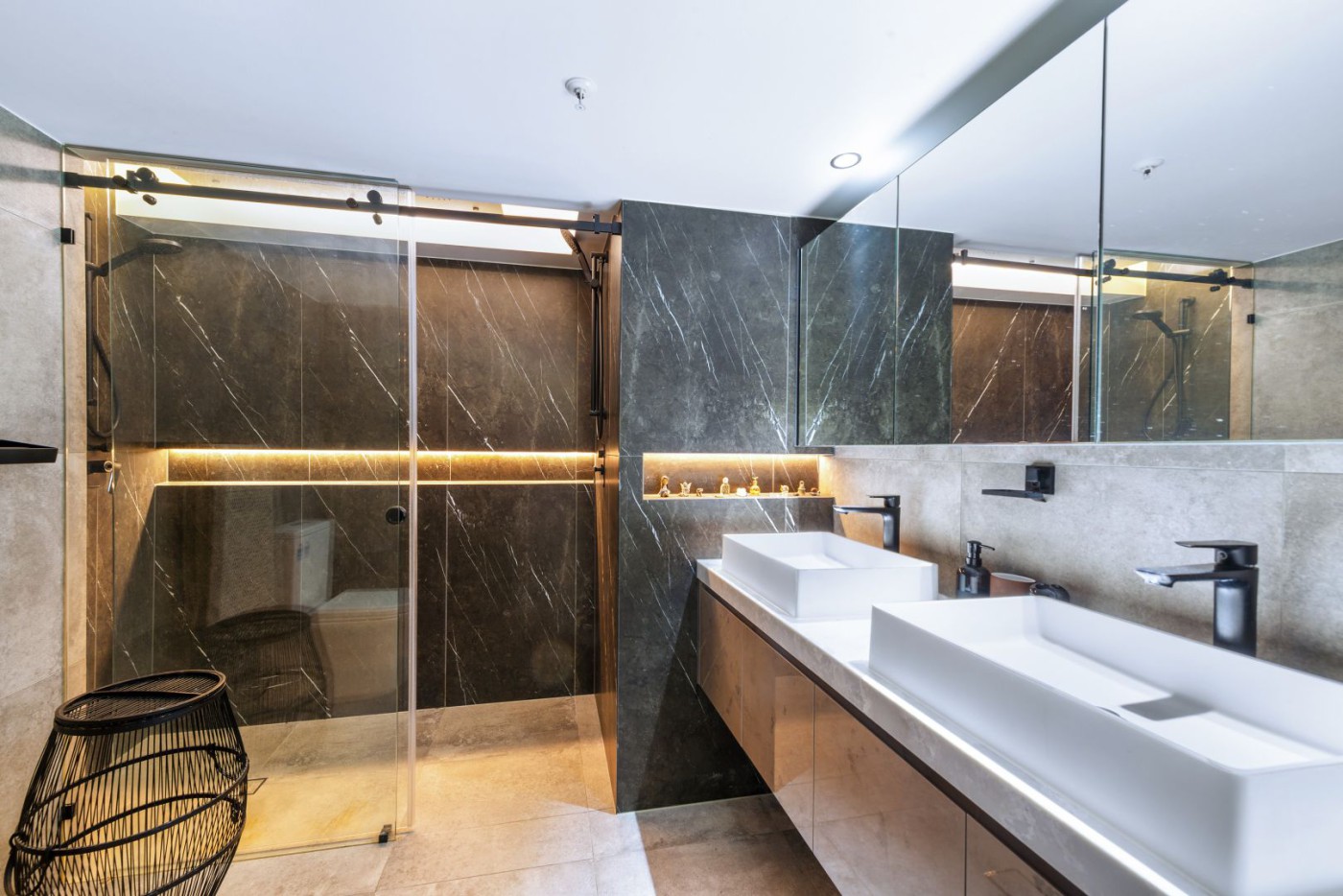 • Luxurious bathrooms with high-end fixtures with floor to ceiling tiled bathrooms and an elegant,