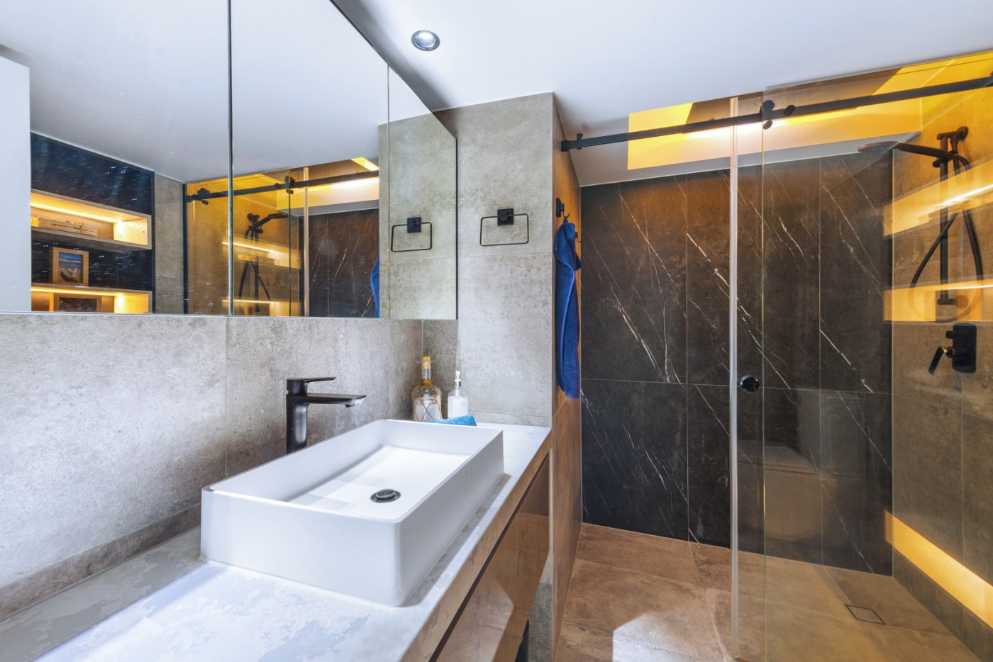 • Backlit cabinetry.