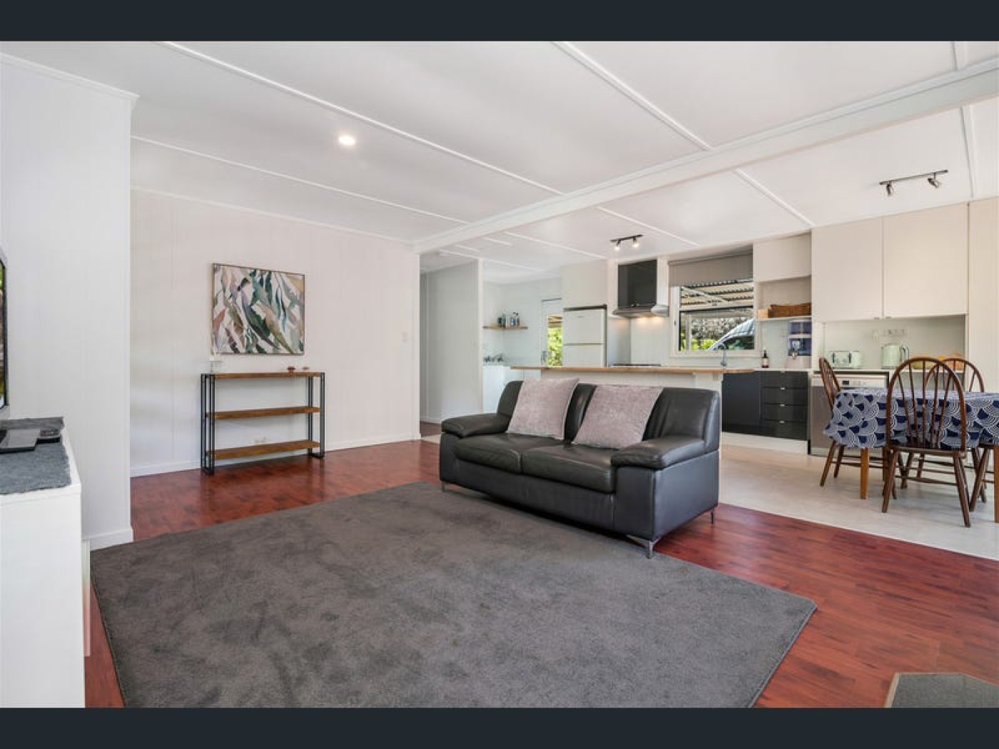 living area bathed in natural light. The open-plan layout seamlessly connects the living and
