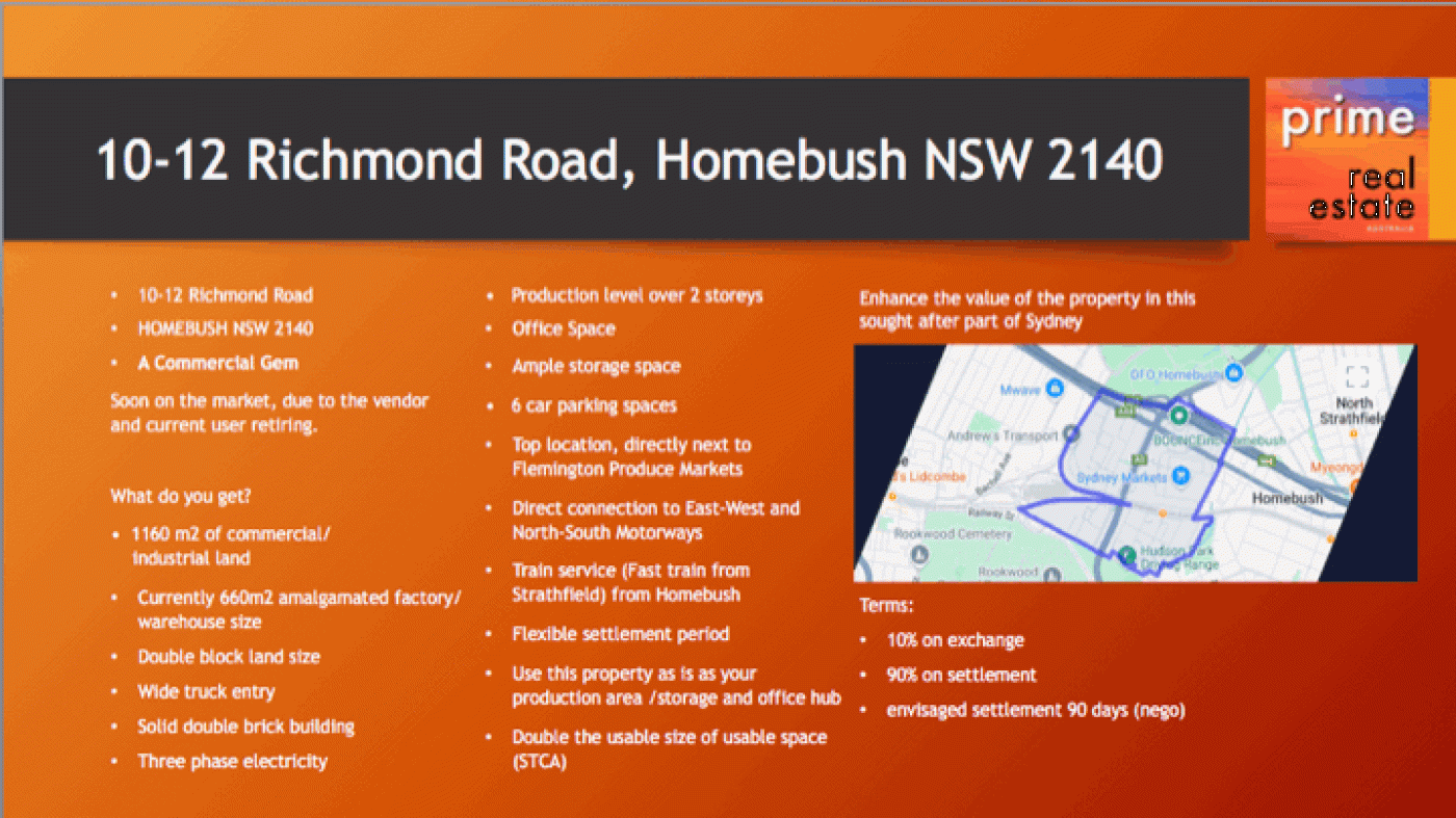10-12 Richmond Road HOMEBUSH NSW 2140 A Commercial Gem. AUS $ 5.5 million