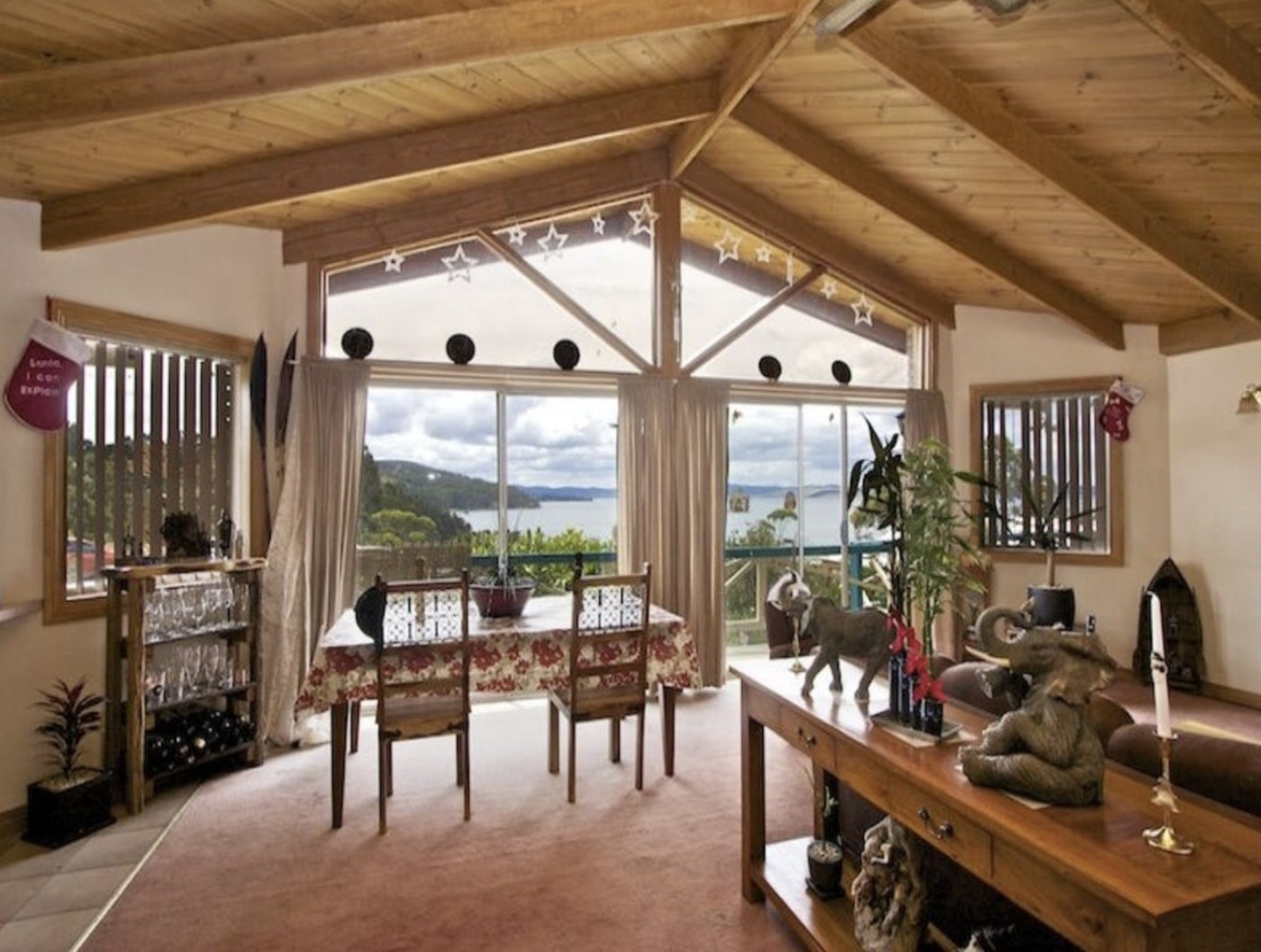 this. The property has 190 degrees ocean views. Timber lined with exposed beams very modern and