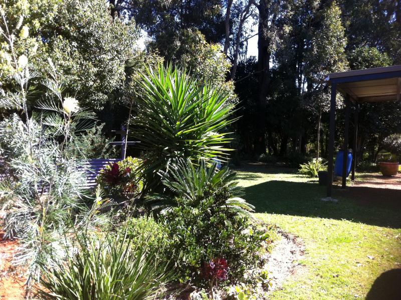 lights, reverse cycle air, fans in every room, dining area ,gas fire, decks, lights outside, outside tap, undulating established gardens to a