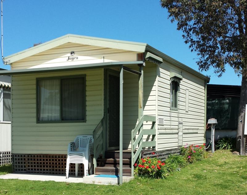 Jayco Cabin for sale, sleeps family of 5 plus +2, 1 bed room and studio area, ideal for young family. Features: Split aircon, Sun blinds, Storage shed, Full en-suite, self contained kitchen, undercover patio, one on site parking spot. Play ground games room and BBQ area just outside, Great location: walk to beach across the road,shops,restaurants,pier