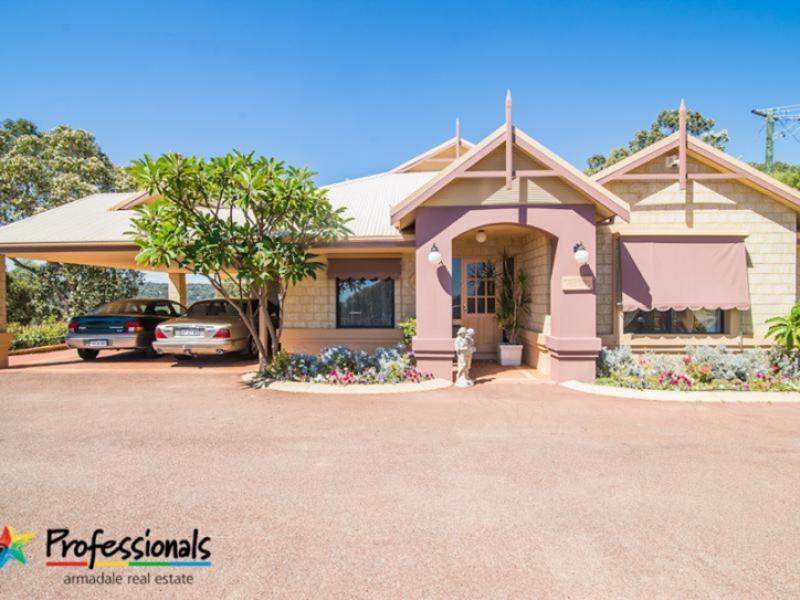 2003 built house ,2 baths, ensuite+3beds or study,1397sqm Hills block,270 sq m house, great views to Perth City& Brookton Valley Double carport open plan,Kitchen /Dining,theatre room ,air con,gas fire,ducted vac, large alfresco. Gazebo,Built in BBQ,fridge &Pizza oven ,68m garden&retic powered shed, Must sell owners Downzising.