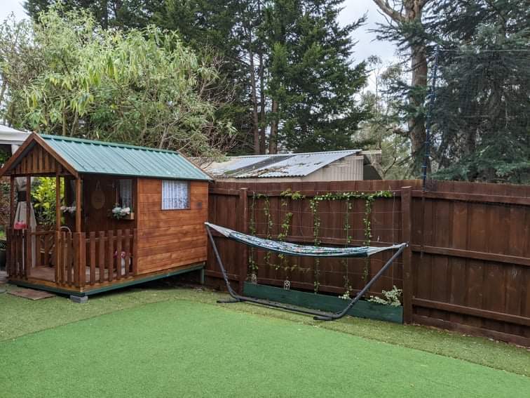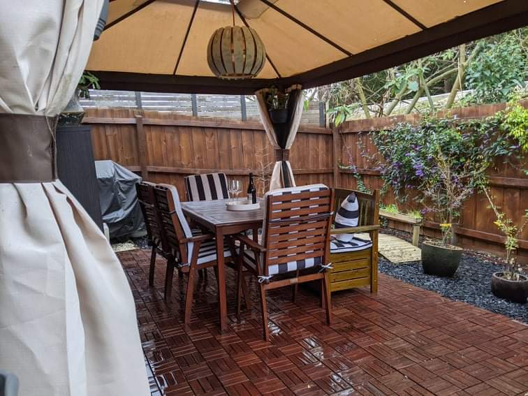 * Private yard with a gazebo and a synthetic lawn area
