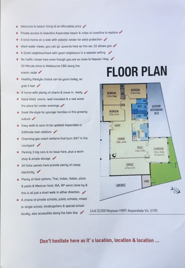BEACH HOME MELBOURNE VICTORIA BEACH SIDE PRIVATE AXCESS”20 min to Melbourne cbd lots of transportation uni schools price is not negotiable at all”terms to suit”cash or gold excepted”double brick home rendered very solid no bills as on full solar wood fire all gas 3 bedrooms with large sunroom 4 car one garage great gardens email for details no scammers or time wasters