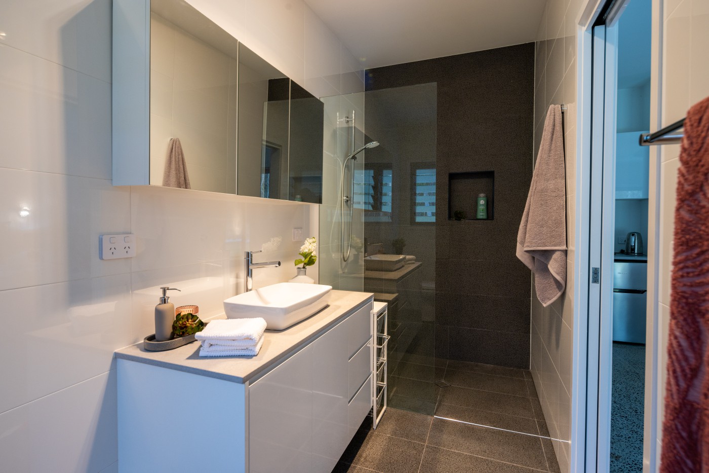 room for more than one chef. With multiple expansive entertaining zones both inside and out (all perfectly framed with those gorgeous bushland views), you’ll never want to leave. Opulence abounds, with three luxurious bathrooms with floor-to-ceiling tiling and flawless finishes. Three spacious bedrooms grace the layout, two complemented with ensuites, a large walk in robe within the main bedroom and quality throughout.