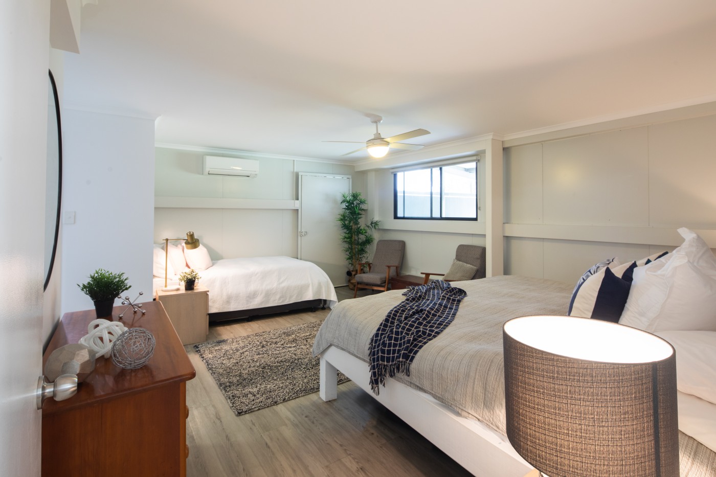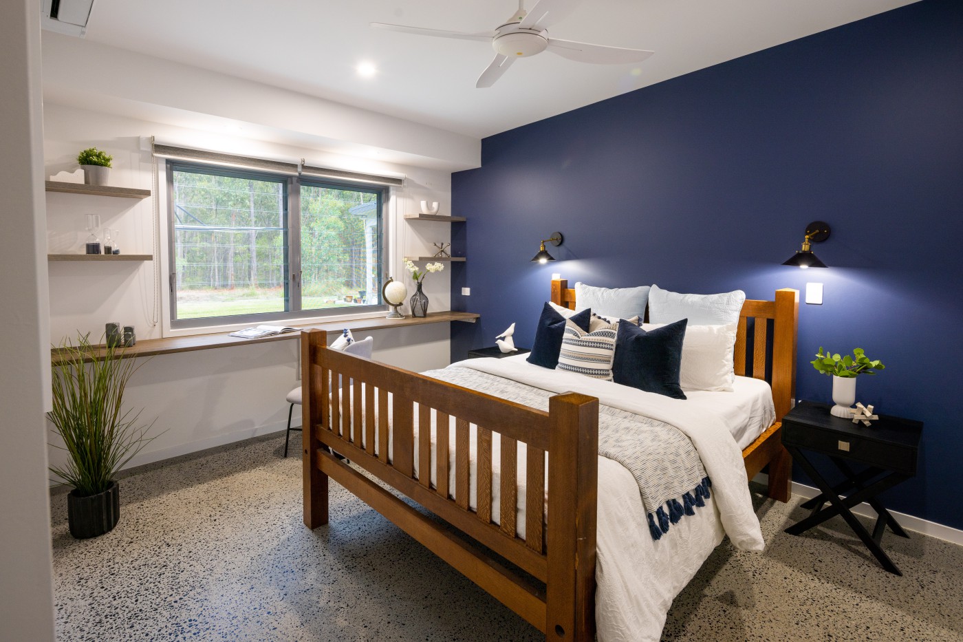 Understated sophistication, space and style flow throughout the master residence. Polished concrete floors feature throughout, complementing a palette of bold colour statements and whisper soft neutral tones echo the tranquil surrounds. Cool and calming, this home allows you to immerse yourself in Australian nature with a casual sprawling design fusing both privacy and togetherness plemented by a well-appointed butler’s pantry, the head-turning kitchen boasts a huge gas cooktop, ample preparation area and plenty of