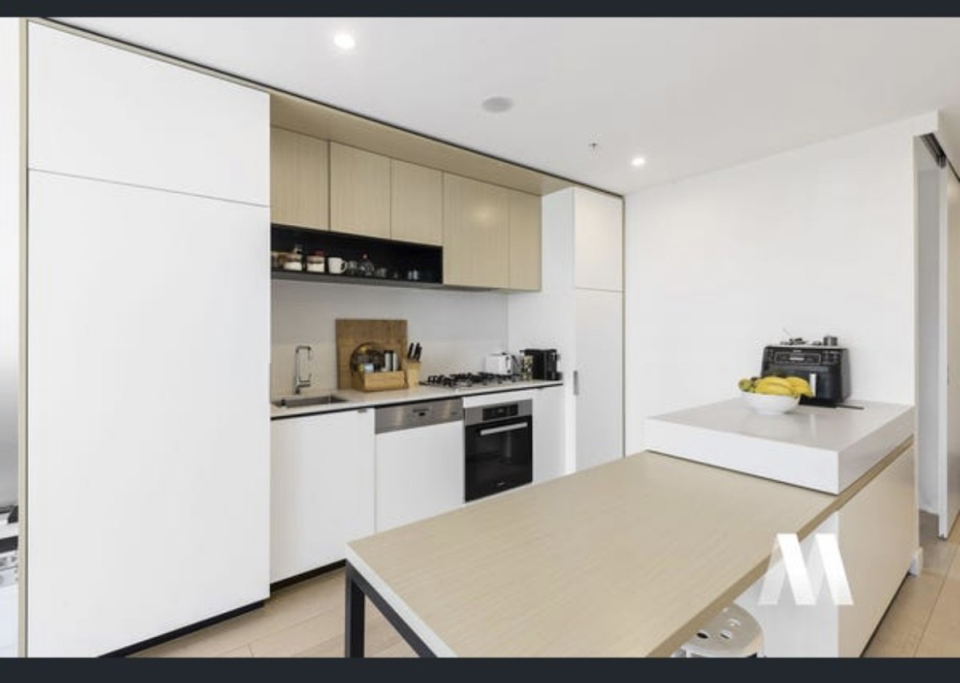 dining table, integrated fridge,