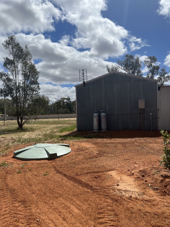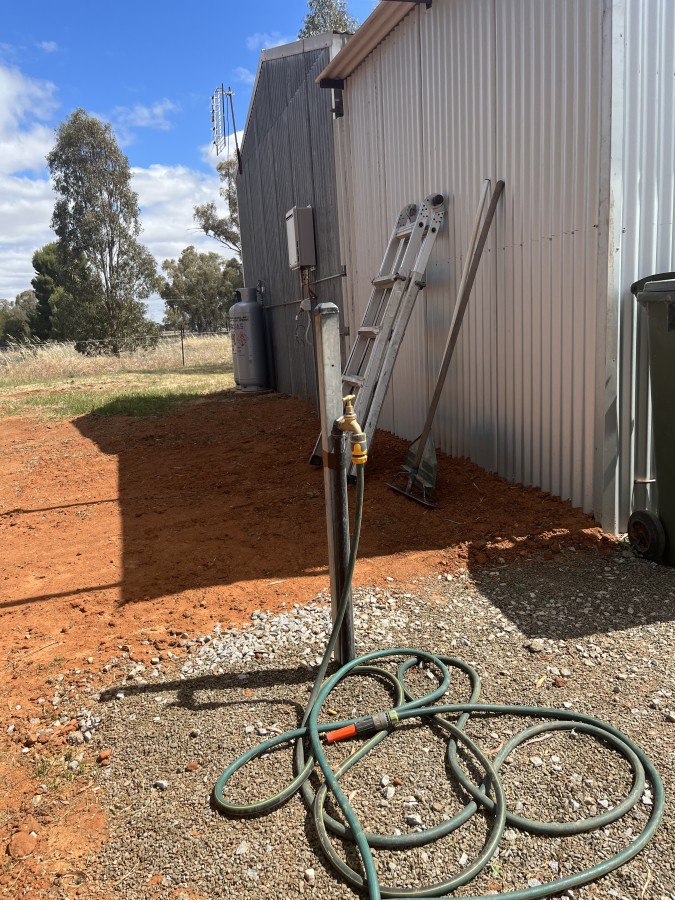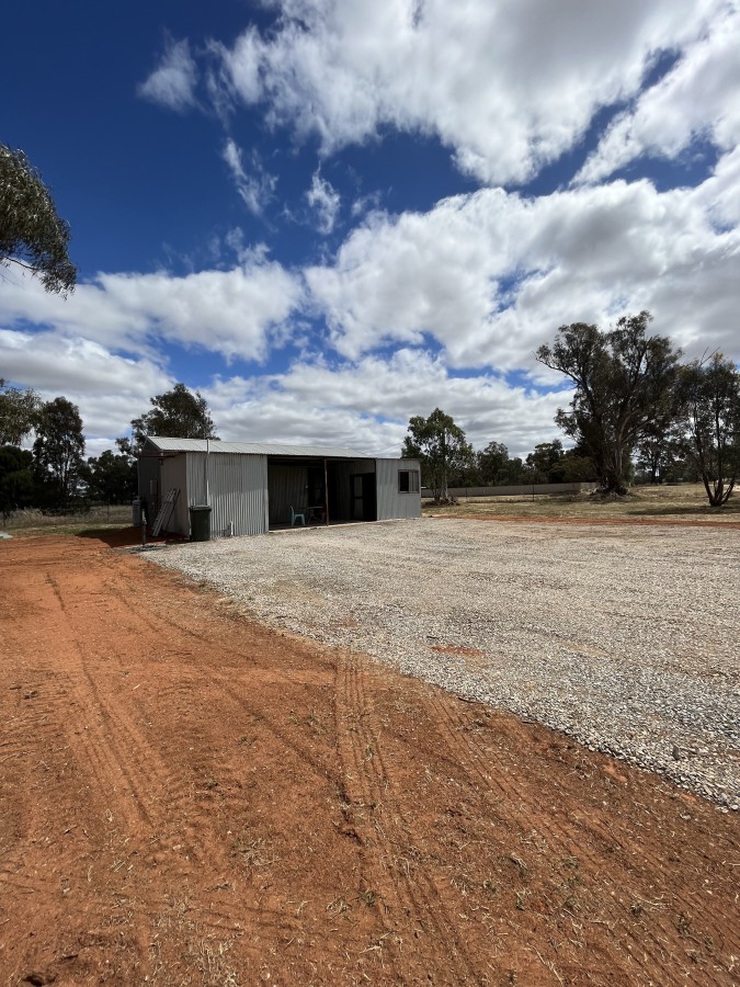5 acres fully fenced with power. Water and shed. Shed is equipped with gas hot water, toilet, shower.