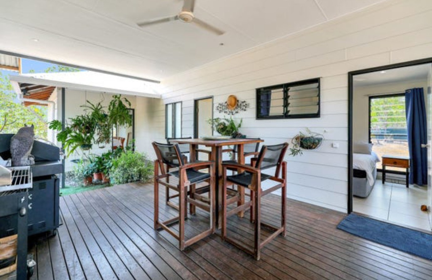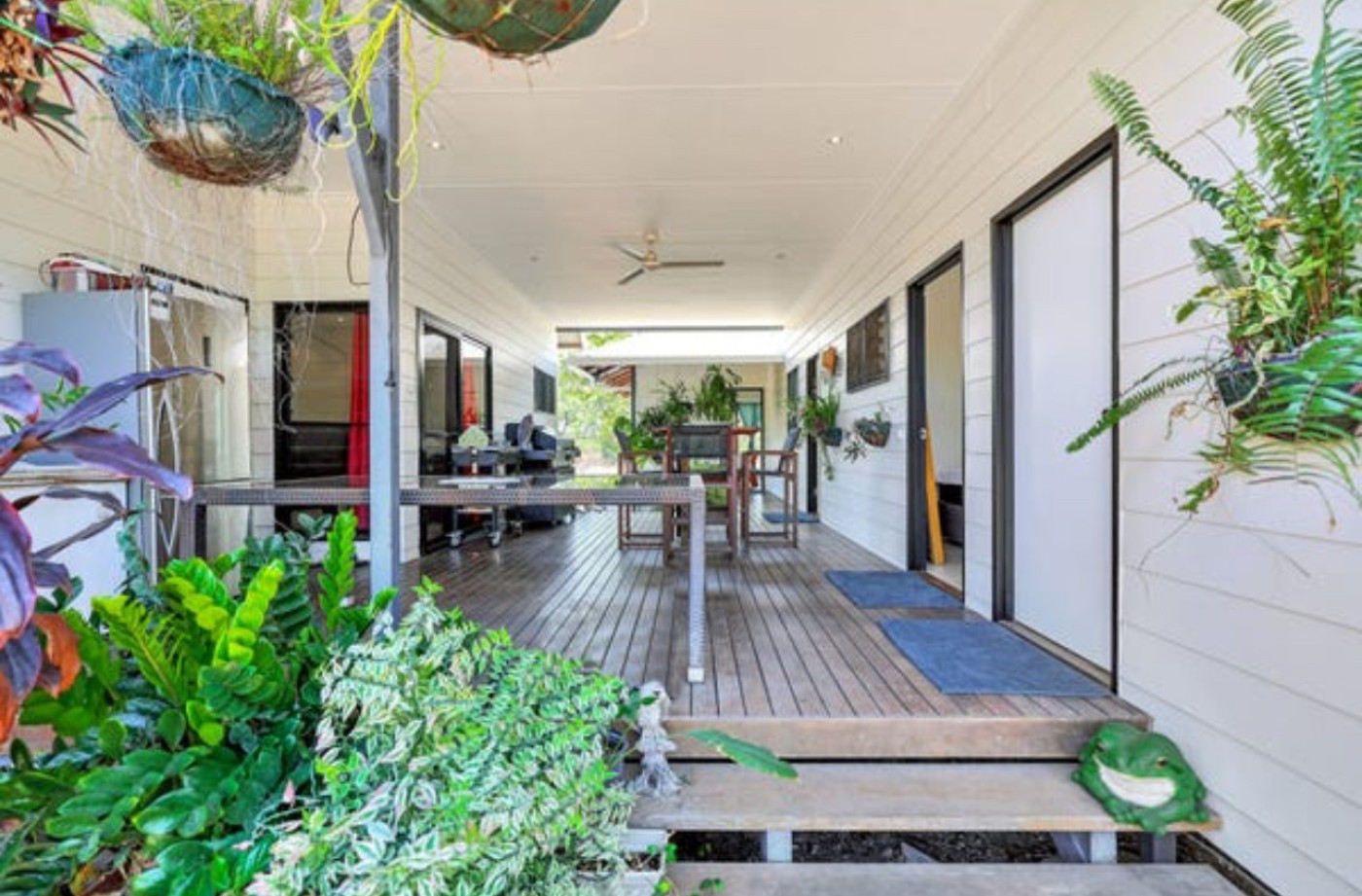 Step back out onto the the wooden connecting breezeway that leads to all 3 bedrooms and the utility room, that takes you through to the awesome Shower room, with the full Bali vibe.