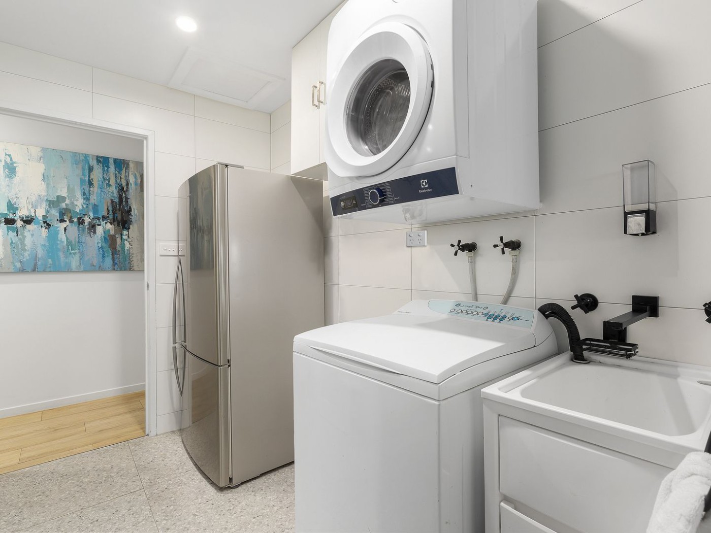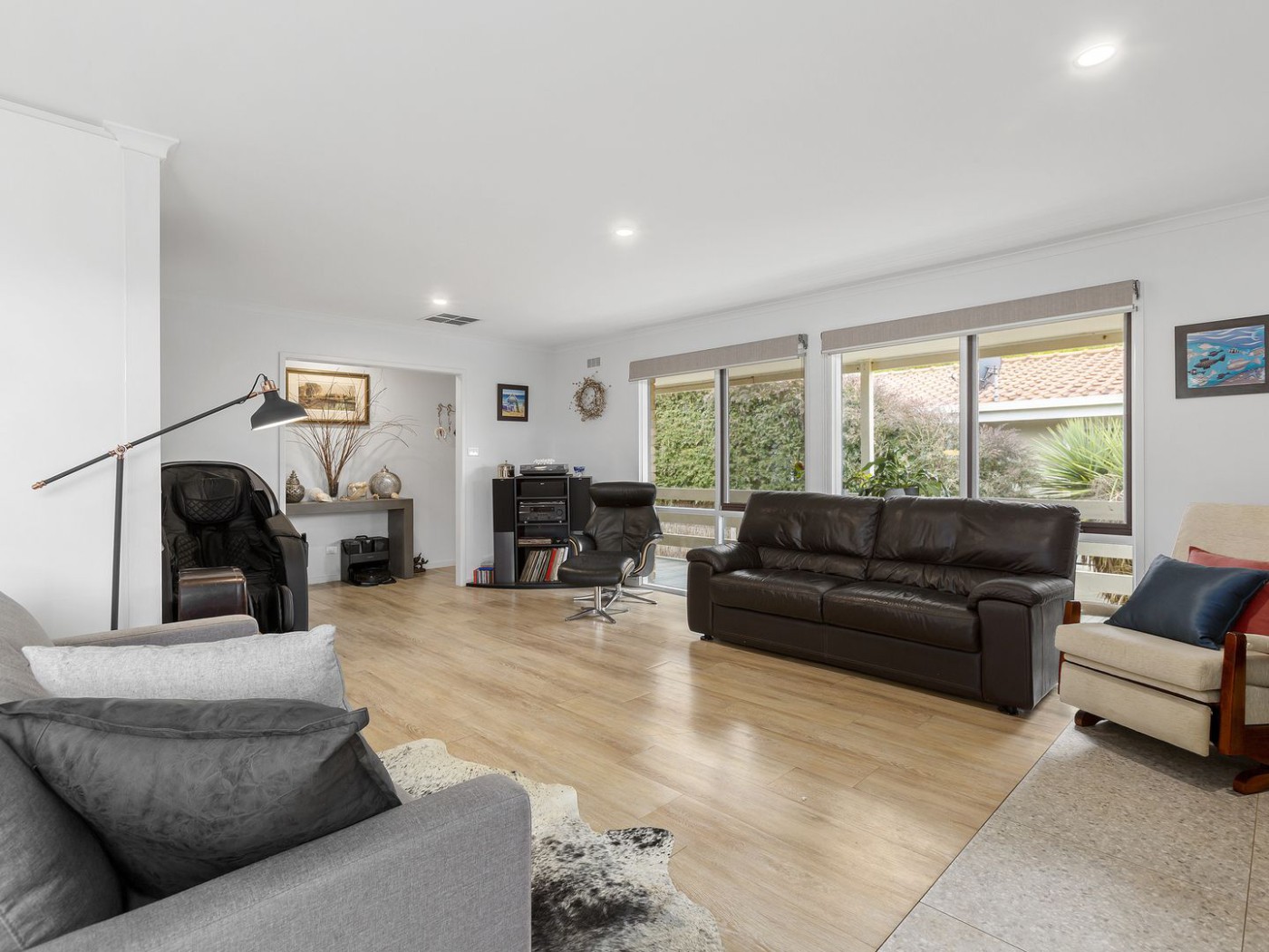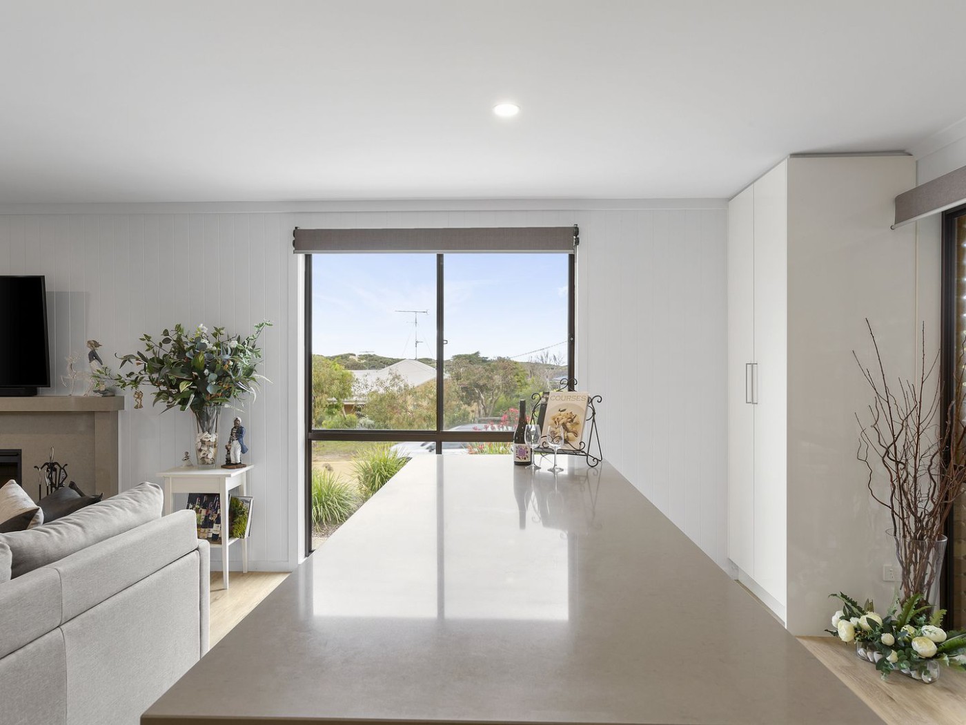 Step inside, and you`ll find a sunny lounge room and an electric fireplace, creating a cosy haven for