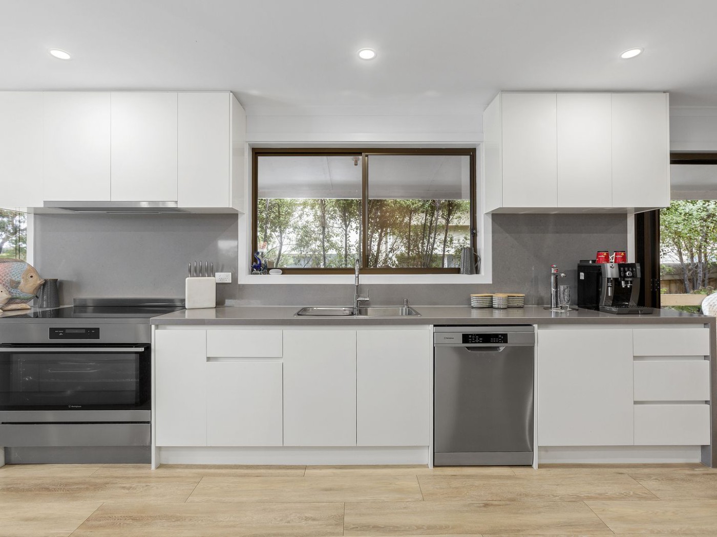 electric cooktop, under bench oven, built-in microwave space, and a Zip filtered hot/cold/sparkling tap - a