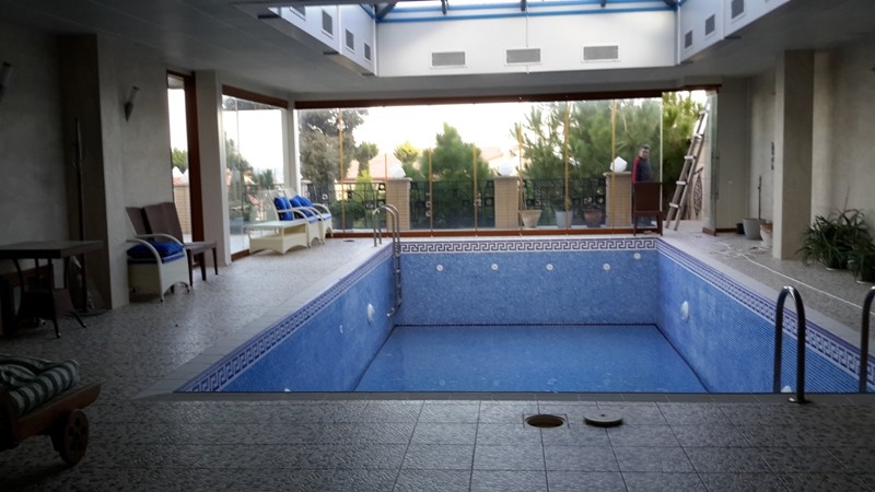 with beautiful rock and glass design, a summer kitchen with barbeque,security house. Glass closed pool