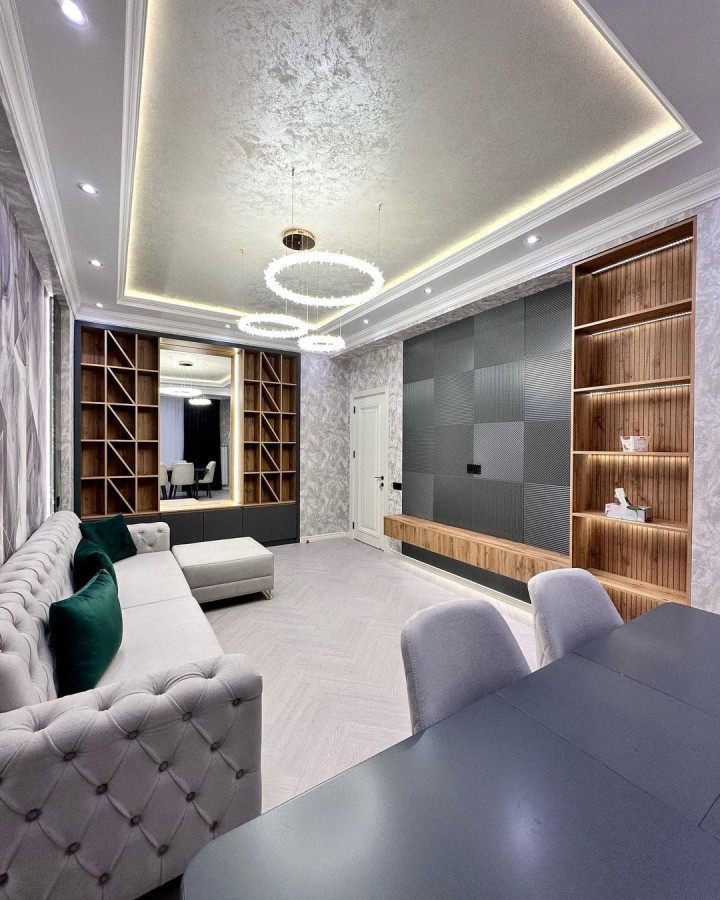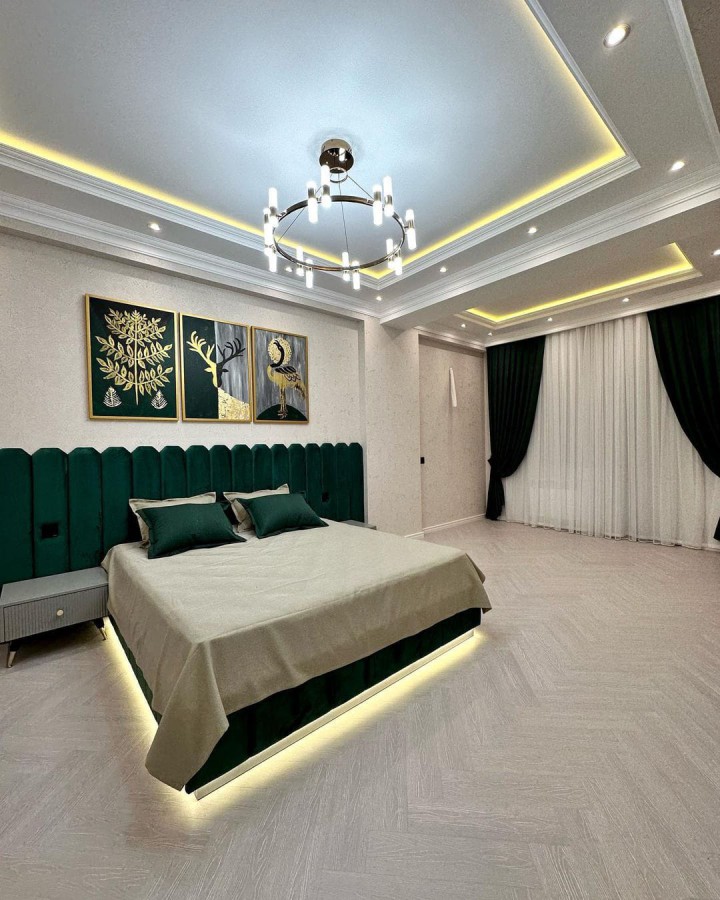 wide kitchen, entrance, living room has modern lightining system, high ceiling, big parking area and