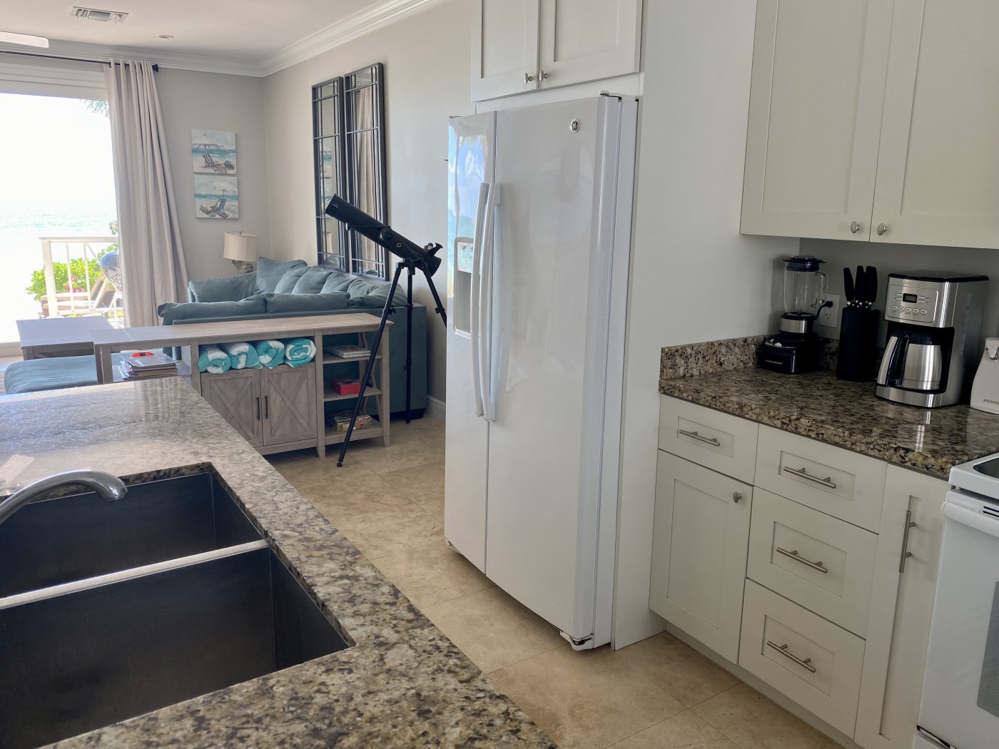 and a living room that opens to stunning ocean views. There`s also a convenient powder room and a