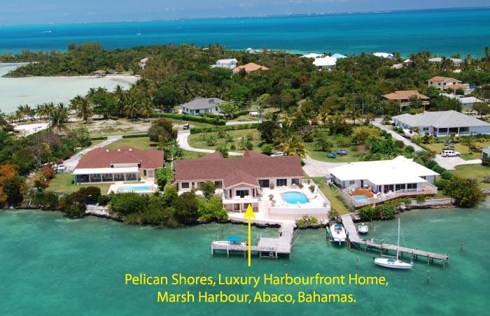 This luxurious, executive style, spacious 5 bedroom, 4.5 bath waterfront home, complemented by a private dock and pool, is situated on a 1 acre tropically landscaped parcel within the prestigious residential community of Pelican Shores overlooking the beautiful harbour waters of Marsh Harbour, Abaco, Bahamas.