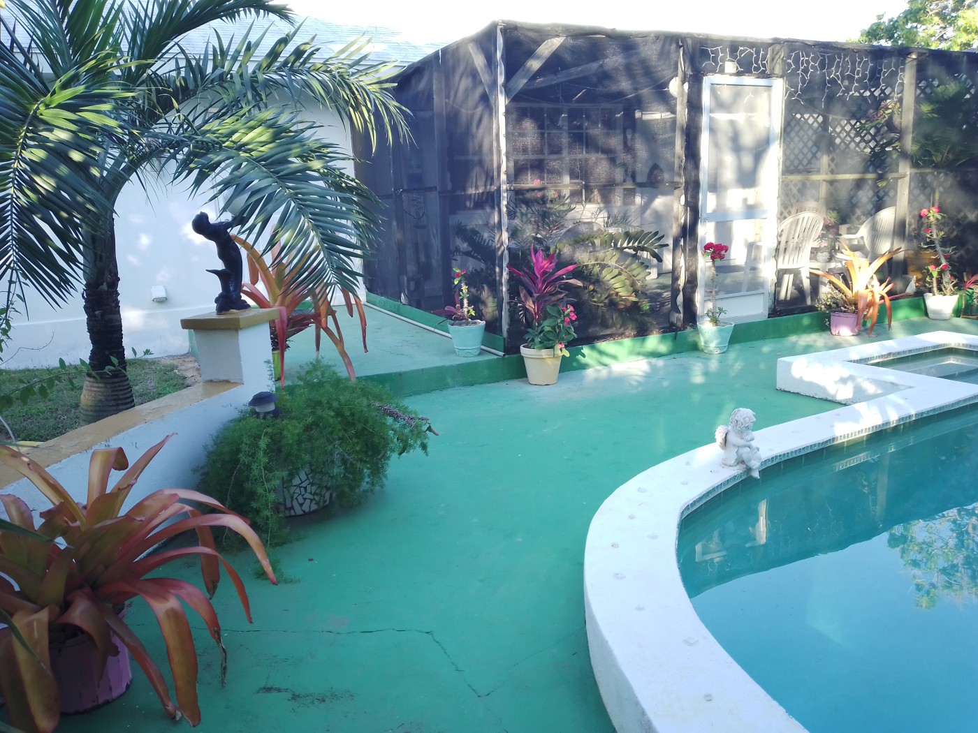 Situated on large meticulously landscaped lot comprising 40,000 SQ ft (0.92 of an acre. Lot size is 150` X 266.5`), this home has 2,088 SQ ft living space. Properly constructed to withstand Hurricane cat 4 storms, built of reinforced concrete and steel, concrete blocks for exterior and interior walls, concrete floor slab with ceramic tiles throughout. lots of natural light fills the home. Master en-suite bathroom has a double jacuzzi tub and separate shower. Walk in closet in Master. Large size rooms. Lots of storage in 3 storage closets. Kitchen is large, with156 SQ feet. Covered verandah at front entrance. Property is well landscaped with hundreds of mature plants. House and property very well maintained. House comes fully furnished with tasteful pieces. screened in back patio of 260 SQ ft and a freshwater gunite pool with wrap-around circular pool deck and wall. A well cistern is on the property, plumbed and ready as a backup water source. 7 tons of a/c cools the home comprising of 5 mini split units. Easy walking distance to Winding Bay Beach, just 1/4 mile away. Neighbourhood is quiet and secluded with very low population. Rock Sound Airport is just 8 miles away and the towns of Tarpum Bay and Rock Sound are within 2 miles and 8 miles respectively, offering grocery stores/ supermarkets, hardware stores, restaurants, banking and gas stations. Fresh seafood ( fish, lobster (seasonal), stone crabs (seasonal) , conch and groupers are available almost daily at the local fishing pier in Tarpum Bay, just 3 miles away. Organic produce is available year-round in Tarpum Bay from local vendors. Property offers great investment opportunity as there is space to construct 3 or 4 cottages for rental income. In this area, a similar vacation rental home will rent for avg US$2,500 to US$3,000 weekly. Make this jewel your Bahamas vacation escape or retirement paradise!