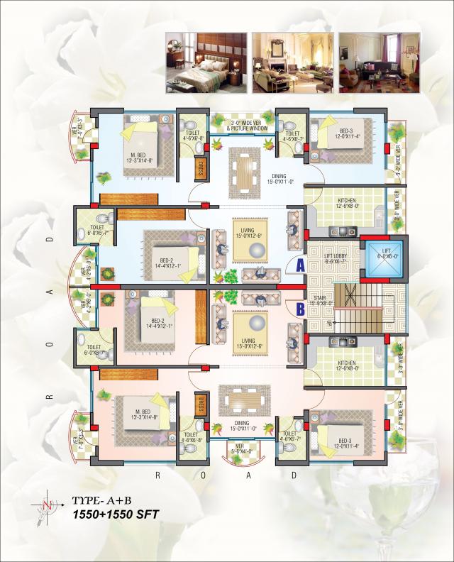 Key Features : ■ Prime location ■ 10 (G+9) -Storied Residential Apartment ■ 3 Bed & Bath, Living, Dining, Kitchen, 5 Verandas (For 1550/Sq-ft) ■ Lift and Stand By Generator ■ Best designed apartment for Natural Lighting & Cross Ventilation
