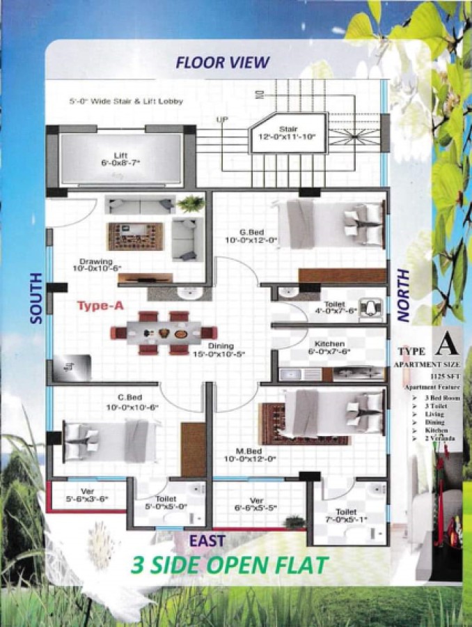 East North Facing ( Corner Plot) . Storied : G+ 9, Total Unit : 4 Unit Per