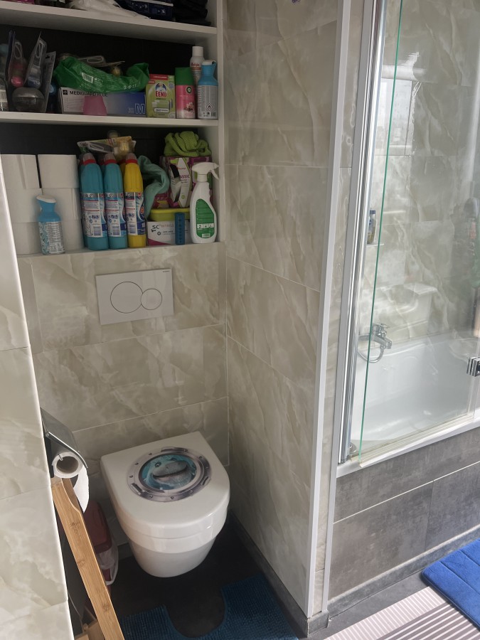- 1 bathroom with bathtub and toilet