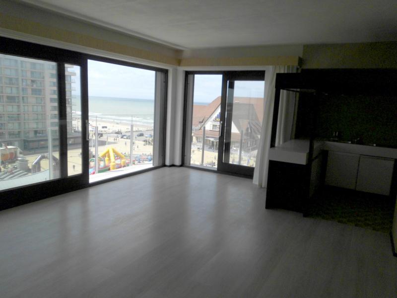 Unique located corner apartment (South-West) facing the Epernayplein and the Casino kursaal, on the sixth floor of Residence GOVENOR. Composition: Nice entrance Hall with vestiary and toilet. Spacious sunny living room of 40m2 surround by 10 m balcony, with a splendid view on the sea, the beach and te Casino Kursaal. Open kitchen, bathr...