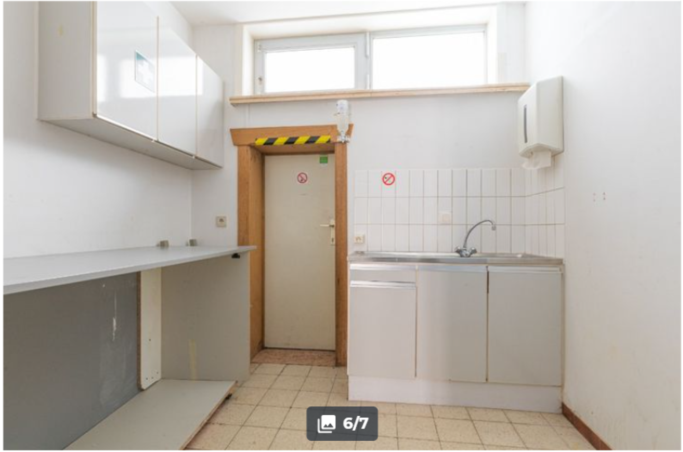 amount of light. There is also a second office space (15m²) and an installed kitchen (7m²) with sink.