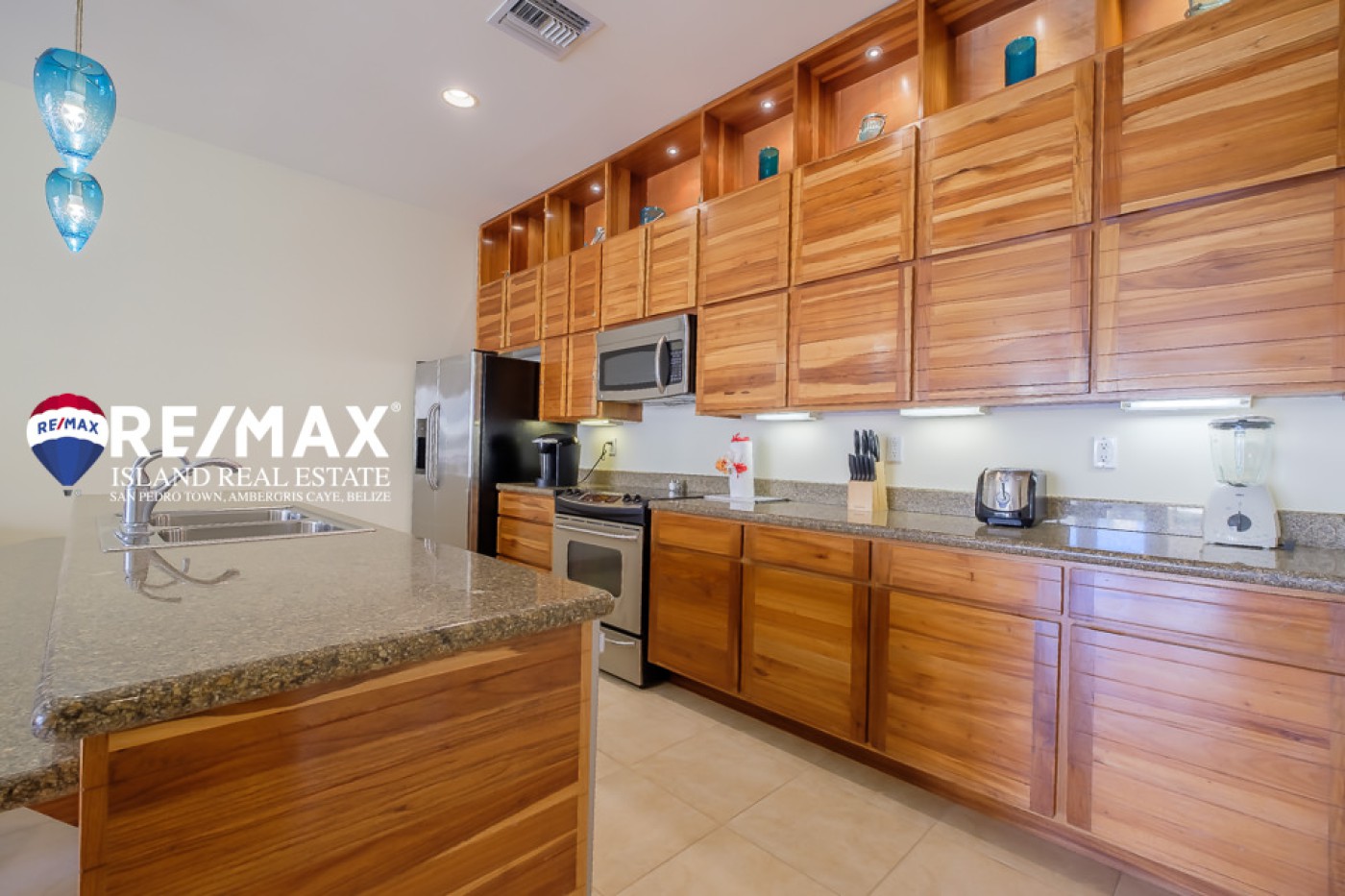 Furnishings The condo is beautifully furnished with Belizean hardwood cabinets...