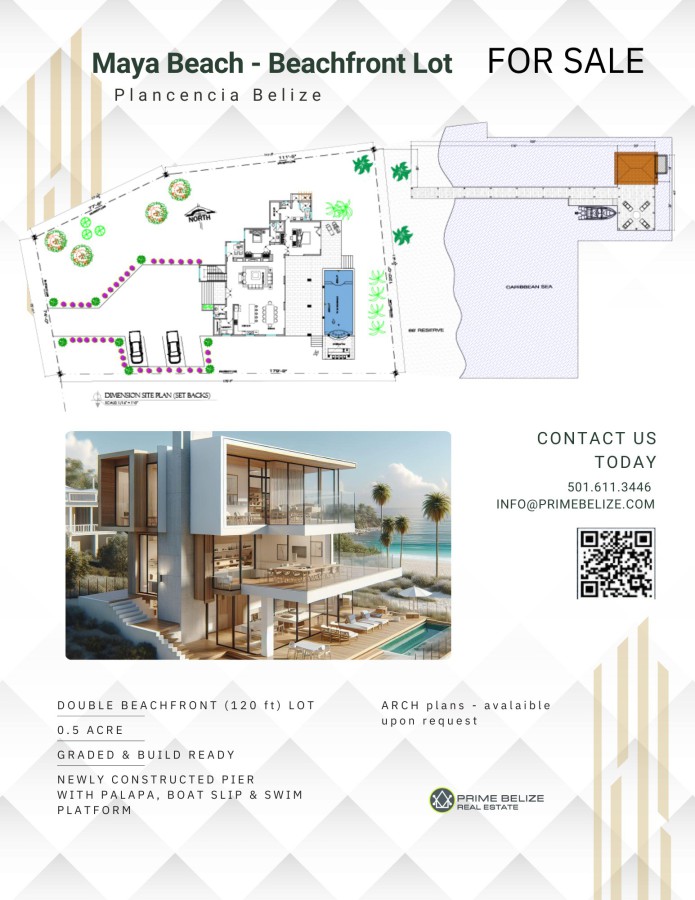 Rarely a vacant land comes for sale in this area, and surely not with these exceptional features. Prime beachfront, including an brand new constructed dock over the Caribbean Ocean, situated in the area known as “the million dollar mile”, an excellent location on the Placencia Peninsula, between the Maya Beach and Plantation neighbourhood.