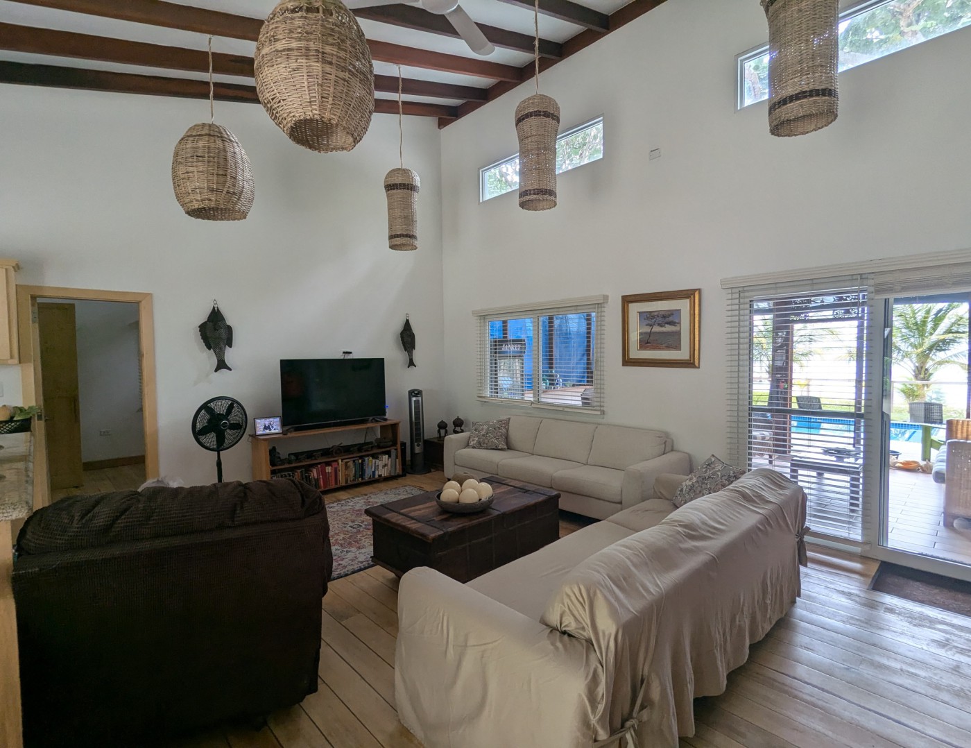 Beach with beautiful big Kahuna palms and Sea grapes. This home is hidden well amongst the foliage, at