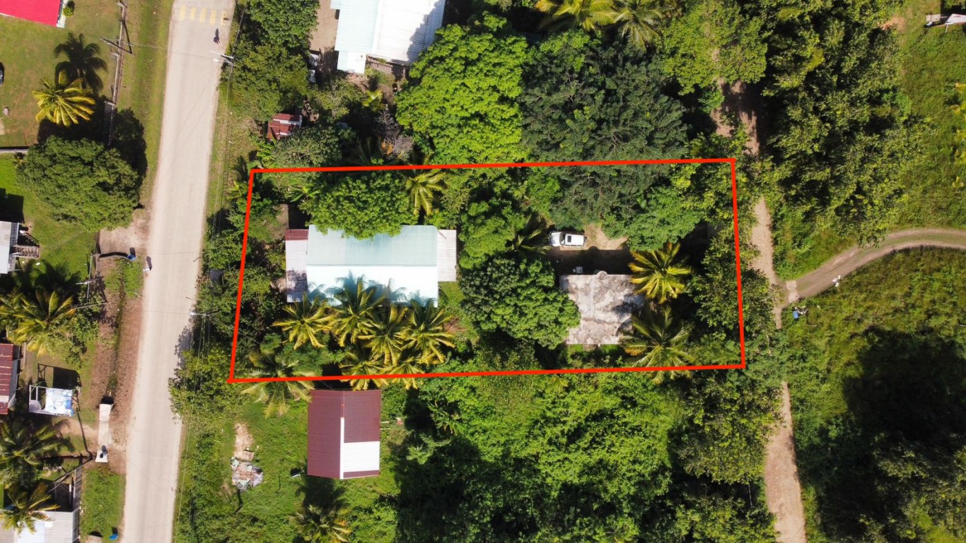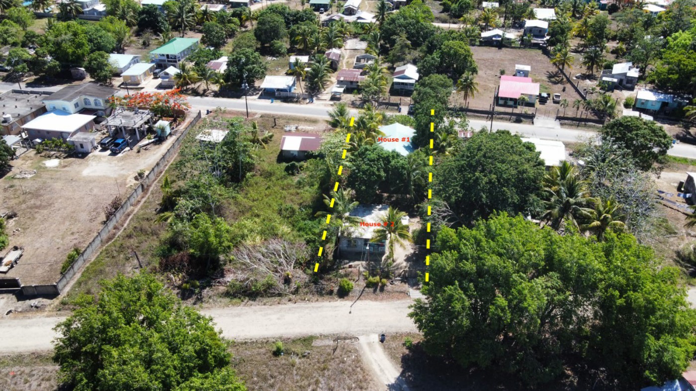 This is an unparallel opportunity to own a rare property in this area. Situated along the paved main road in Independence village this property has a 600 square feet concrete 2-bedroom/1 bathroom house built in 2005 and large wooden frame house that once occupied as guest house now requires renovations but has all the potential for an A...