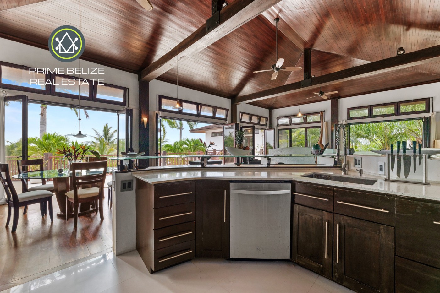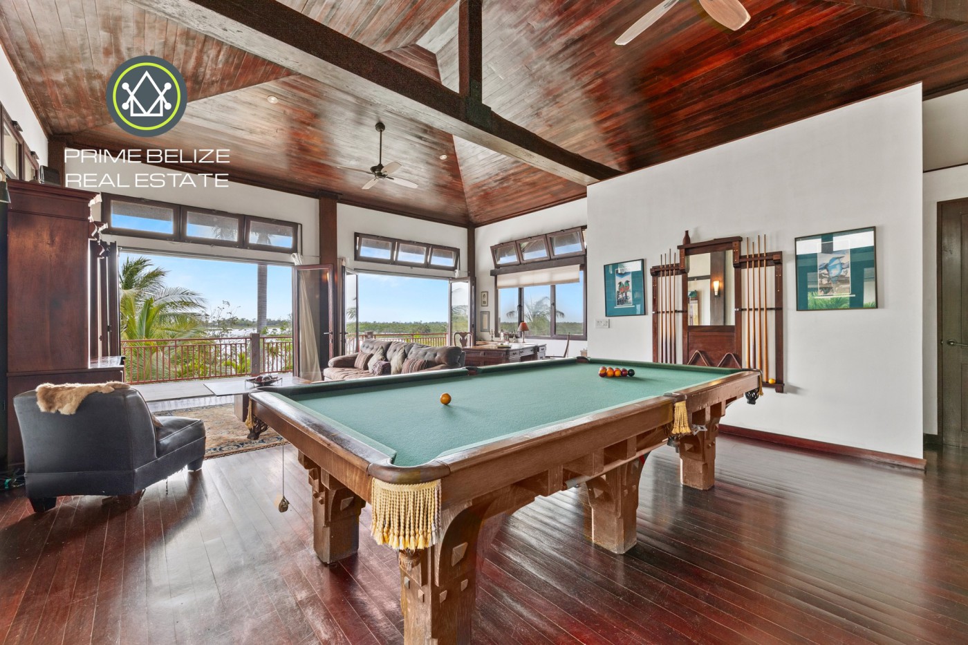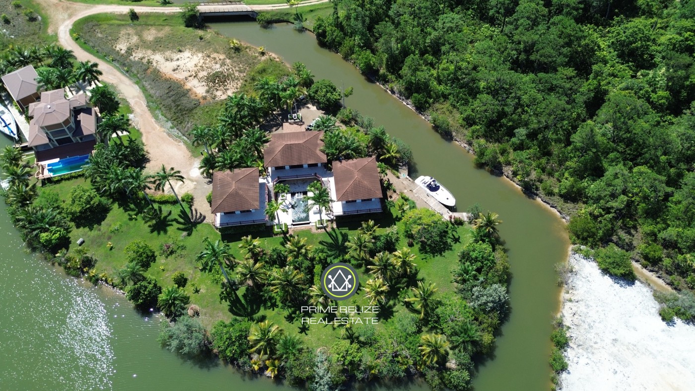 Comment: Discover Caribbean living at Villa Bella Serena, a 4-bedroom, 5-bath pavilion-style estate in The Reserve. The 5,000 sq ft villa (over 11,000 sq ft total) on 1.15 acres is surrounded by water on three sides with a pool and boat dock. Three pavilions - linked by a stone veranda - house the Great Room, chef-s kitchen, master suite, library and two guest suites. Floor-to-ceiling glass doors, hardwood and vaulted ceilings create seamless indoor-outdoor living. The pool courtyard has a waterfall, lounge area and outdoor kitchen, and the veranda offers sunset views. Residents enjoy 24-hour security, a private Beach Club and marina access. Fully furnished, this villa delivers luxury and tranquility - the finest in Belizean waterfront living.