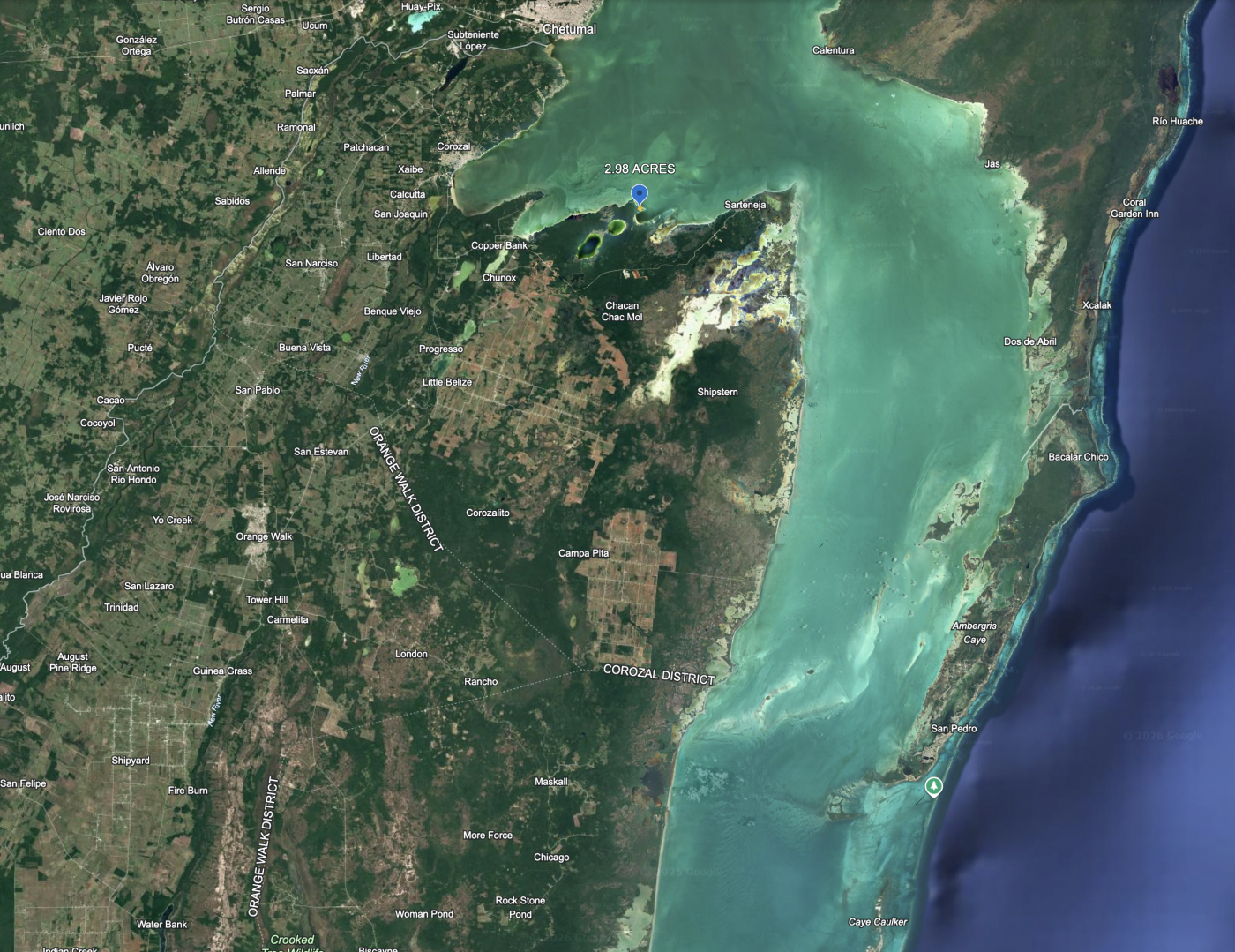 Property Overview: - Size: 2.9 acres - Setting: Waterfront in Warree Bight - Proximity: 15-min drive to Sarteneja - Zoning: Residential land
