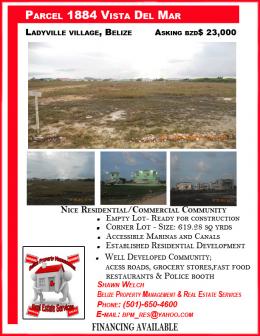 The property is an empty lot situated in a nice residential/commercial community in the Vista Del Mar, Ladyville Village, Belize District; which is approximately 10 miles from Belize City. The land is solid and is ready for construction, having all utilities available. Vista Del Mar is one of the established residential developments within the Be...