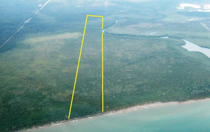 Approximately 498 acres situated south of the Sapodilla Bar mouth boasting of approximately 1,234 feet of prime and untouched virgin beaches. Hundred percent of the beach front is white sandy beach with numerous Coconut Palms and sea grape and tall Black Mangrove trees. There is a nice berm approximately 30-50 feet wide along the coastline. From what can be observed passing the berm along the beach heading west (inland) the property drops and becomes relatively wet and low but can be filled.