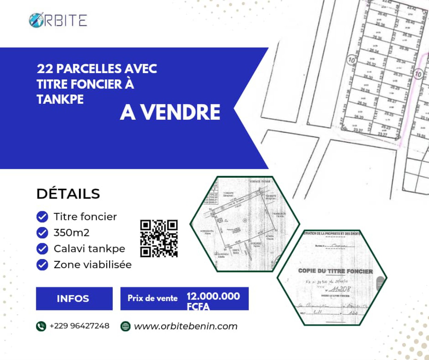 -- 22 parcelles avec TF a Calavi Tankpe : a vendre a Calavi tankpe dans la zone de tapis rouge