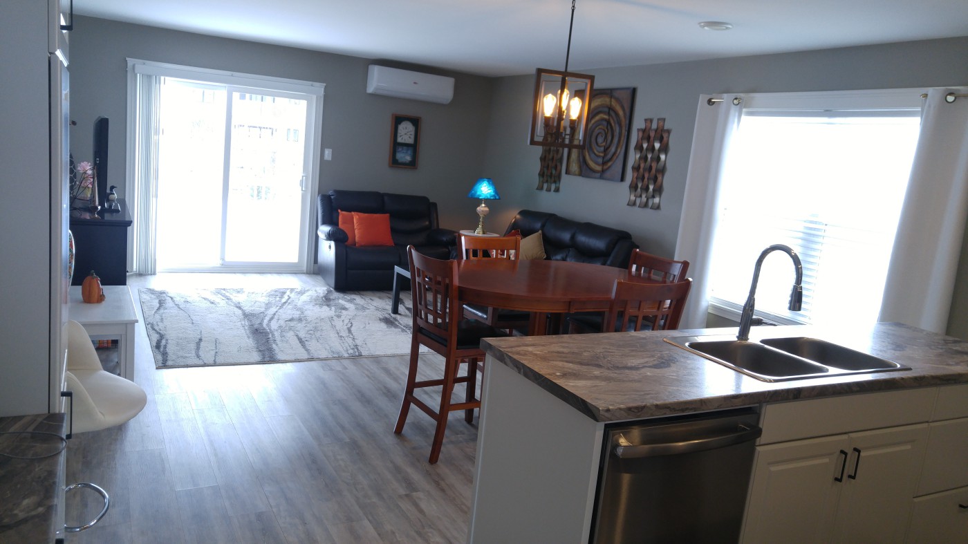 Semi detached house in Sussex, N.B. Canada. 2 beds, 1 bath, one floor, no stairs to climb. House is 4 years old, in excellent condition. All appliances included, washer, dryer, stove, microwave,dishwasher,fridge. All appliances are GE. 5200 sq. foot property. House is 1000 sq. feet. Close to major shopping Quiet cul de sac street