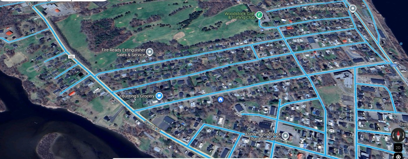 155 Elm Street, Woodstock, NB E7M 1R7. Walking distance to all schools, golf course, Civic Centre (Ayr Motor Centre), post office, banks, library, government agencies, college and shopping centers. White house in picture is no longer there. Just the land.