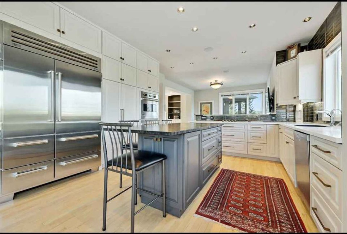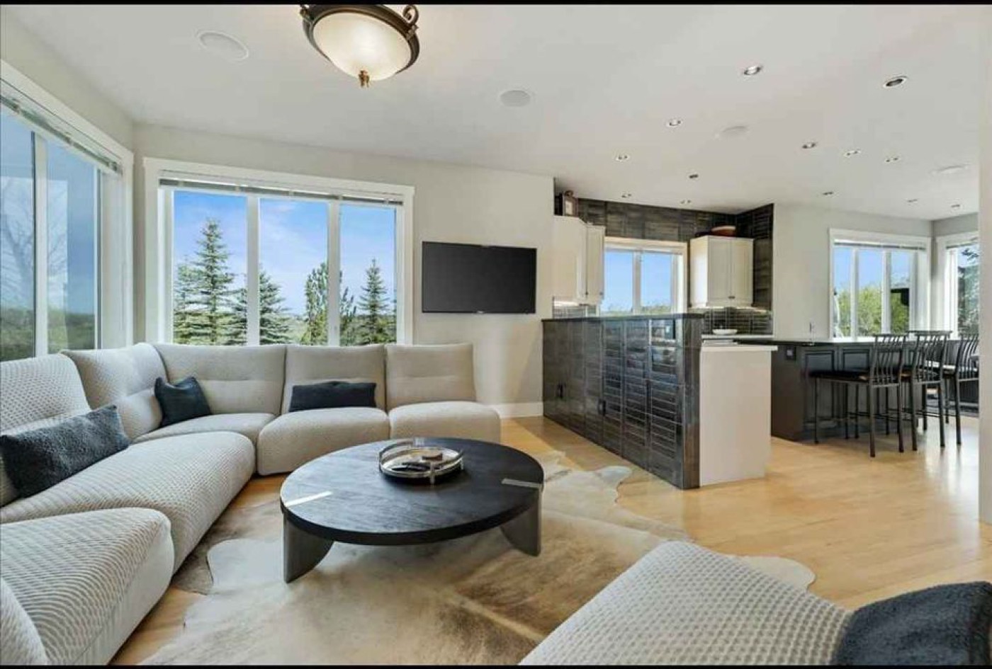 This is one of those rare spectacular homes with incredible upgrades and immaculate views! Situated at the end of a Cul de Sac in the estate portion of Scenic Acres. With views of the mountains and COP out the back as well as downtown from the front of the home, you literally have some of the best views in the city. The enormous walk out lot has a built in sports court with lighting and custom built in garden beds. The southwest back exposure allows natural light to flood into the home all day long while also being able to enjoy the private back yard in any season. The gate right out of the back yard leads to a gorgeous walk down to a ravine, berms and right to Bowness Park! The Appliances are ones you would only see in luxury magazines and show room floors. They truly make the kitchen a chefs dream! Double wide Pro Series Sub Zero fridge and Viking stove and gas cooktop are perfect for gourmet meals made at home. Double set of front loading LG laundry is ideal for large or active families! The entire home was fully renovated in 2015 by the original owners and meticulously cared for since it was first built. Pride of ownership shines through the entire home! The fully developed basement has built in storage, wool carpets, and a steam shower in the fully renovated bathroom. The main floor has new, oversized windows to take full advantage of the breathtaking views. This home is truly a must see in person