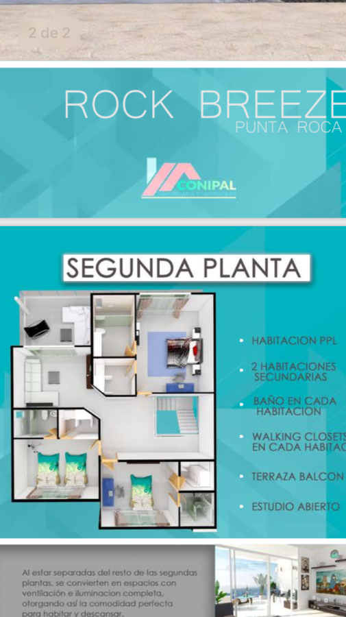 3 cuartos 1 cuarto studio 1 cuarto de labores 1 cuarto de empleado doméstico 1 sala 1 comedor 1 cocina abierta 1 patio 1 balcón con vista a la playa 1 parqueadero interno