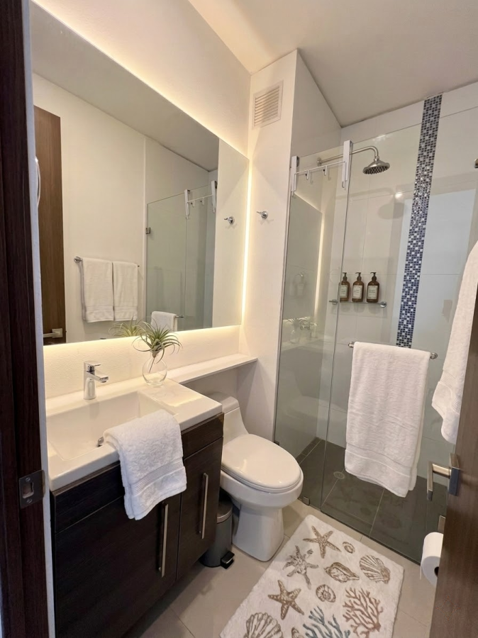 Discover a modern, fully furnished 2-bedroom apartment in the upscale Caribe Palma building in Pozos Colorados, Santa Marta. This coastal residence offers comfort and convenience just moments from the beach.