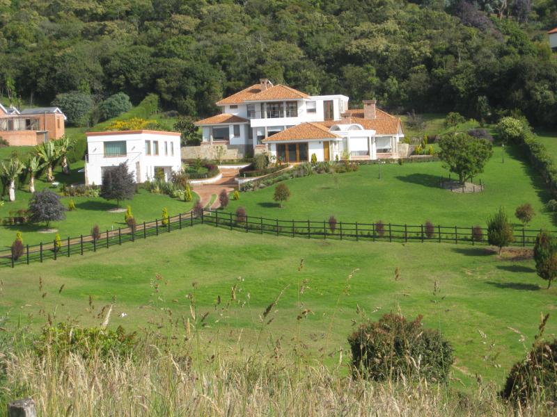 Furnished house in gated community in one of the safest and most peaceful places of Colombia with a spectacular view of the mountains of Cota, Tenjo, Tabio. Automatic gate and path width of over 150 feet footprints brick. First floor with four levels, entrance hall, porcelain tile floors, marble and laminated surface, the house has more than 30 wall hanging lamps and imported, with large windows, lot of over 13,000 m2 with wood fenced corral. Floor heating, beautiful gardens and forest area. Recording studio. Professionally decorated with modern furniture and contemporary creative makes a contrast with the architectural design of colonial reminiscence, beautiful curtains. More than 150 m2 in halls with Spanish porcelain floor with high wooden ceilings and concrete. Recording studio.