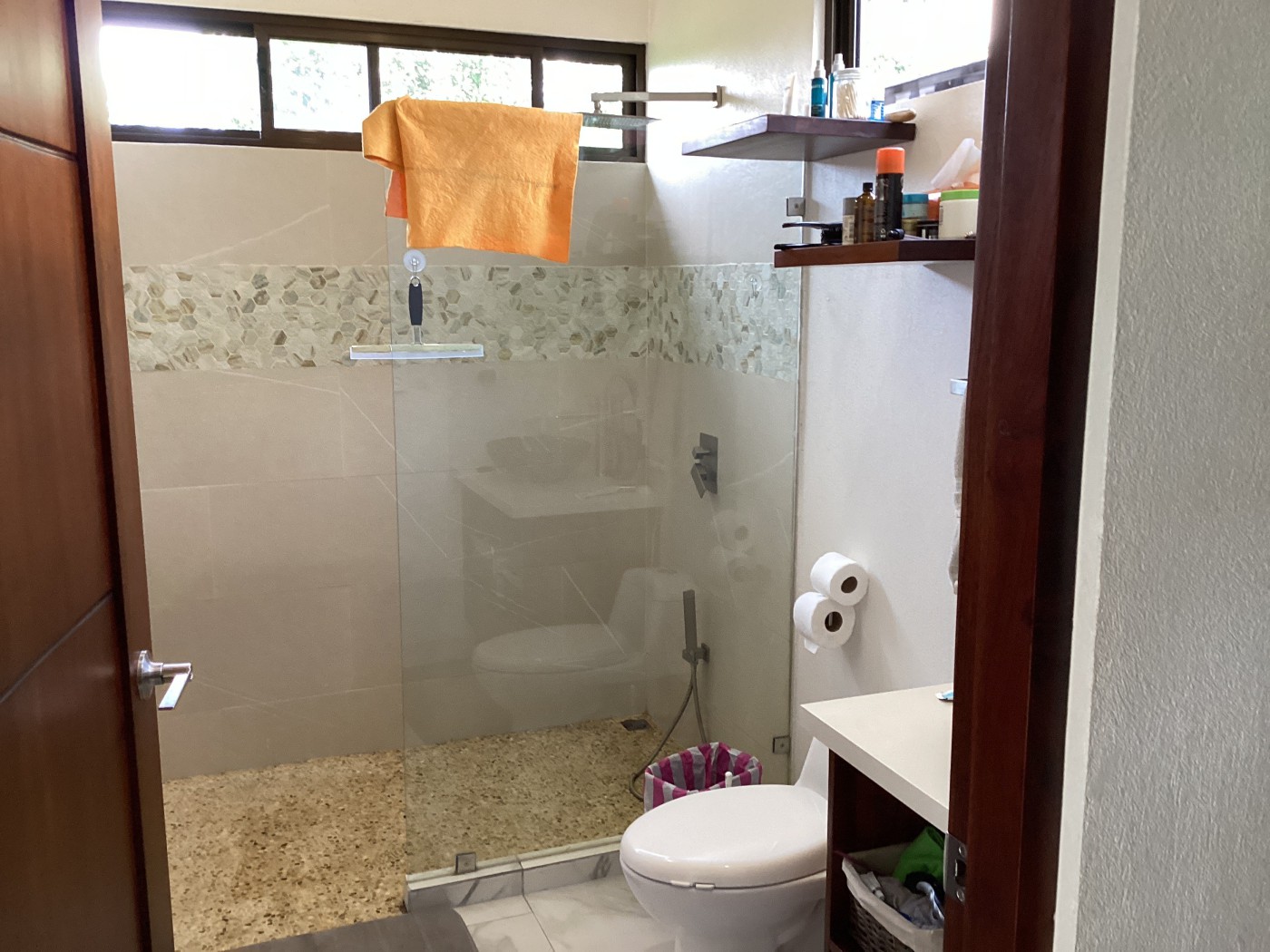 with kitchen and TV access. Lots glass and very open if need be. Screens on