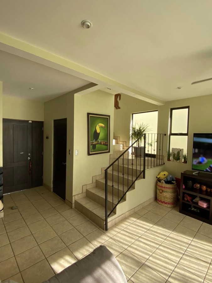 The ground level offers an open floor plan, including a spacious kitchen with granite